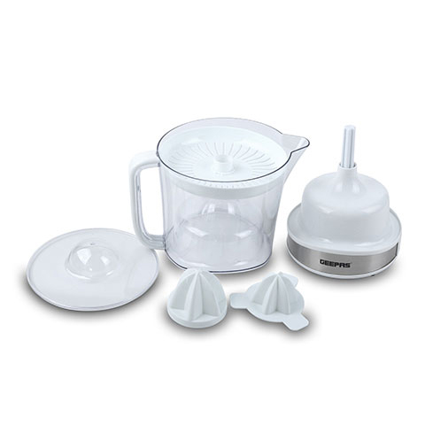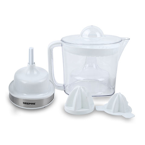 1. GEEPAS 100 WATT COPPER MOTOR - Fresh fruit juices are a delicious snack and an essential part of a healthy, balanced diet. A good juicer can provide you with fresh fruit juice while still maintaining the natural goodness, taste, and nutrients.2. 1.5 LITERS CAPACITY - The juicer jug can hold up to 1.5L of liquid. You can extract more juice at once without needing to empty it before each use. This way this device prepares a good amount of fresh juice for everyone to enjoy at a time.3. AUTOMATIC SQUEEZING - When the handle is pressed down, the motor will work to automatically mimic the motion of hand-squeezing a fruit. Such effortless experience will make you want to juice every day.4. EASY POUR JUG WITH HANDLE - The generously sized transparent container gives a protected compartment to ensure the substance is kept inside the container, taking out mess and keeping your worktops clean. It additionally incorporates a simple pour spout and cover to improve security and exactness while making the most of your delicious juices.5. KEEP AN EYE ON QUANTITY WITH THE MEASURING GAUGE - Remembered for the side of the container is a volume scale, estimating in liters, this juicer permits you to see the exact amount of your juice. Ideal for following diet plans.