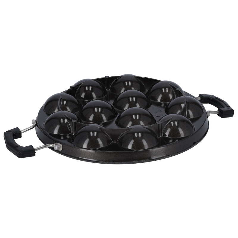 This Aluminium baking mold plate for the famous poffertjes can be used on gas and is evenly heating cooking plate. poffertjes are small batter trait pancakes. They are more fluffy than usual pancakes and taste delicious with butter, powder sugar or syrup. With this baking mold plate, you'll always have a beautifully shaped homemade poffertjes within minutes.The aluminium baking mold plate can be cleaned easily and is a warrant of success: Your poffertjes cannot fail. Simply mold the batter into the molds and let the proffers bake for a few minutes. Besides this beautiful cast iron baking mold plate, you only need a poffertjes mix, some eggs and some milk. Try to bake your own poffertjes, they'll be delicious!