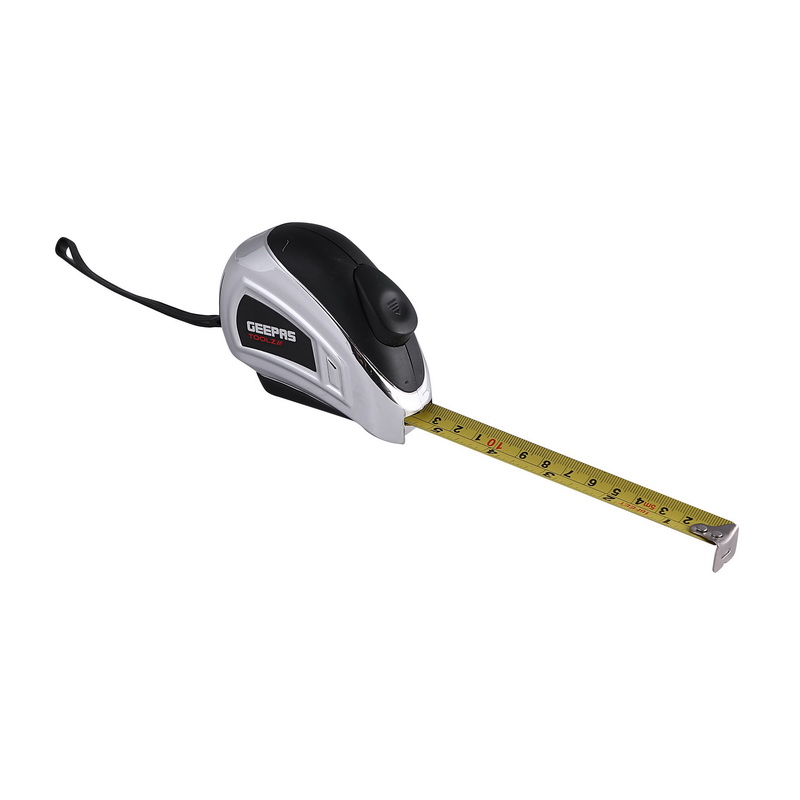 Geepas Measuring Tape is a general tool for use in measurement in sewing, woodwork and other DIY projects. The task of the tape is to provide accurate measurements. The tape is made of ABS material. It is thick and has a strong rubber-like structure. It is famous for its rigidity, gloss and insulation properties. The coating prevents the tape from breaking. The blade of is 16mm thick and has markings on it. The thickness prolongs the tape life. The tapeline can give a correct reading up to -+0.2mm. The entire tapeline is five meters long. This length is suitable for most of the measurements. It has a hanging rope; you can use it to keep the tape in place.The tape has a self-lock option and is a simple, easy to use tool in daily life. And thanks to the sliding hook, both the inside and outside dimensions can be measured perfectly. That's how measuring is done today! Thanks to an automatic locking function, you can conveniently pull out and measure with your measuring tape without it rolling back up on its own. If you want to start the retraction, just press the Unlock button and the steel band disappears into the housing. It does not get any easier!