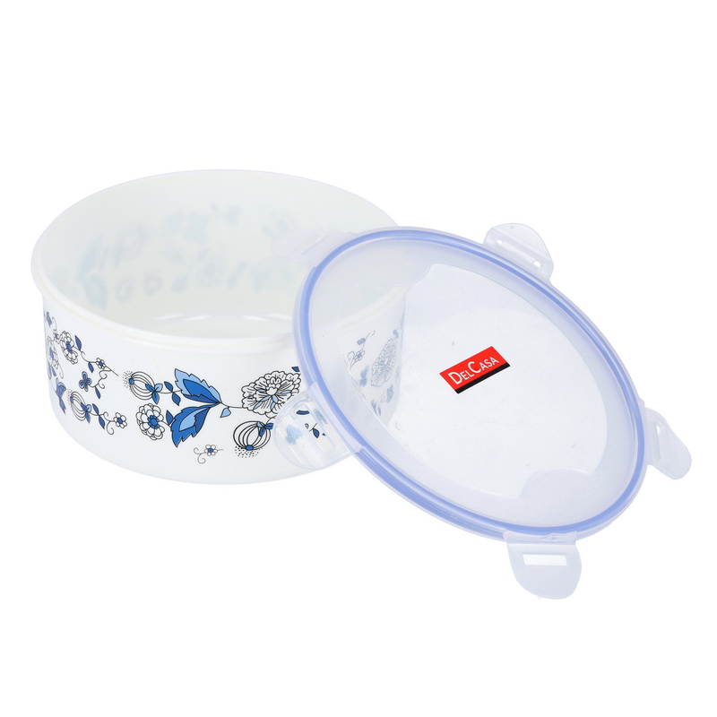 DIFFERENT DESIGNS - This 4 Pcs Porcelain Bowl Set with lids is available with floral design. The set, each bowl is of different capacity. A complete set of 4 round & deep serving bowl with glass lids perfect for delivering many delicious dishes. Each bowl of a different capacity crafted from durable white Porcelain with transparent glass lids, double integrated carrying handles and a beautiful floral print to suit all dining occasions and bring a touch of luxury to your meal.MADE TO LAST, PORCELAIN! - Heavy-duty white Porcelain with a made to last polished finish is what makes this Bowl set extremely durable & long-lasting. As Porcelain is robust and has a smooth high resistant surface, the bowl are break-resistant against chips, drops, scratches or any other form of damage. Fully strengthened hard Porcelain used to ensure these bowl are not fragile, do not discolour and are corrosion resistant.HEAT & FREEZE RESISTANT PORCELAINWARE - The Porcelain is toughened and tempered to ensure this bowl with glass lid set remains resistant to high heat or sudden temperature variation. Hence with this set, you can serve delicious hot or warm food straight away, reheat food within the bowl or even refrigerate food without any issues. Heat & Freeze Resistant makes this bowl set Dishwasher, Microwave & Refrigerator Safe.