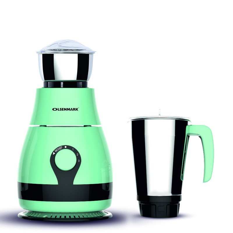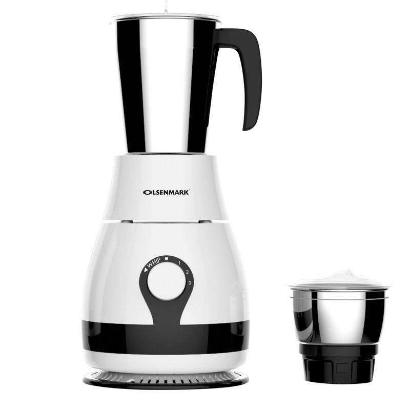 Making Grinding fast and simple with Olsenmark Mixer GrinderThe grinder comes with 2 stainless steel jars with stainless steel blades for fast and fine grinding and blending, ideal for dry grinding, wet grinding and batter making. Both the jars come with lids to prevent any leaks while operating. With its twist lock jar this grinder is really durable and sturdy. Use this appliance to prepare smooth gravies, chutneys, fine spice powders and a lot more.A stay cool base motor unit with vacuum rubber feet make it safe while operating and allow vibration free grinding.3 Speed DialSwitch the dial as you need the blending with the powerful motor gives you a fine grinding of the hard ingredients in just few minutes and saves time while cooking.Note - Ensure all components are properly locked before switching on the machine.