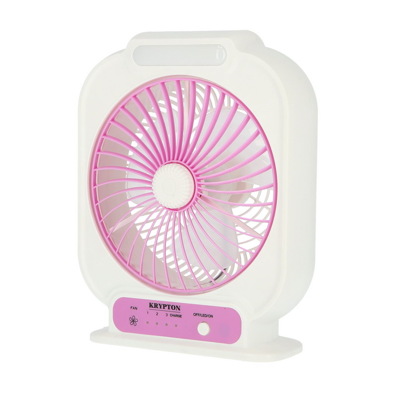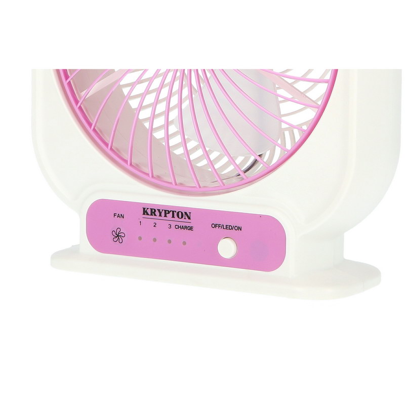 Krypton KNF222 Rechargeable Mini Table Fan can be your perfect companion during the hot season. It can be used for both home and office cooling activities. It is a small but powerful fan that can be easily used. It produces a strong airflow on the highest option! With 3 Adjustable speeds, giving you choice to Meet your cool needs with low and high level speeds, at a swing. Adjust appropriate fan speed by rotating the speed knob repeatedly. Comes with a high quality Fan guard, it makes sure to keep your kid's fingers safe. Krypton mini fan also comes with night light and 12V solar dc input.Few of the key Features include3 SPEED SETTINGSMULTIPURPOSE PORTABLE FANMICRO USB CHARGING12V SOLAR DC INPUTLED NIGHT LIGHT5 PLASTIC BLADES