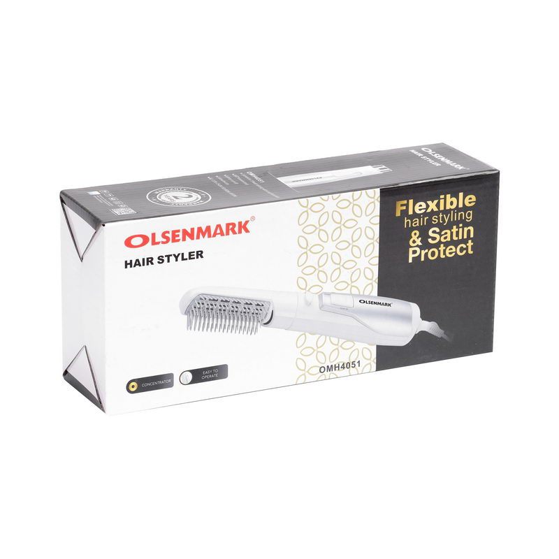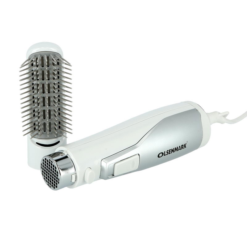 OLSENMARK HOT HAIR STYLERChoose the style You want with Olsenmark Hot Air Styler!COMPACT AND BEAUTIFUL DESIGNOn any trip, you may need this hairbrush to keep your hair beautiful. Its small size allows you to transport it in a bag or suitcase. You can separate the body from the nozzle, compactly fold it and not take up much space. You can choose between the pink and blue body color of the device based on your preferences.CONVENIENT TO HOLDThe handle of the detangling hairbrush is made specifically to fit the shape of the hand. You can comfortably hold it throughout the entire process of drying hair. Despite the high temperatures, the body of the appliance will not heat up and harm your hands. The device has a fairly small weight so your hand will not get tired if you plan to work with your hair for a long time.