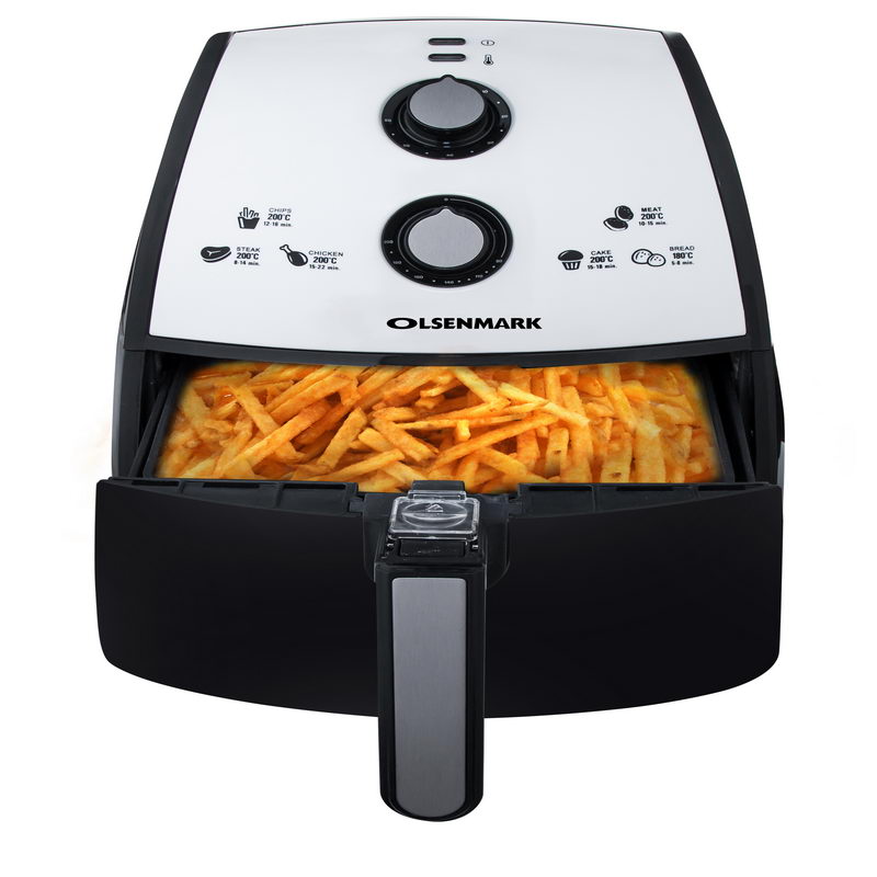 Healthy, Low-Oil CookingThis air fryer features an innovative air circulation system, reducing the need for oil whilst creating healthier, low-oil alternatives to traditional fried favourites. It has an auto-shutoff function, timer and temperature dials, as well as a removable non-stick cooking pot for no-hassle operation.Healthy Frying, Healthy Eating!Compact design: The air fryer provides enough space to grill a variety of ingredients and can easily be stored away.MultifunctionalIdeal for home-made chips as well as steak, fried chicken and roast vegetables, this unit cooks a wide variety of meals.Family Size Fry Basket, 4LThe sides of the fry basket are fitted with a specifically designed ventilation grille, this allows the super-heated air to pass through at high speed creating a cyclone effect that quickly and efficiently cooks food. The bottom of the fry basket is lined with holes to remove any fat produced during the cooking process.Endless PossibilitiesOur multi-use air fryer can bake, fry, slow cook, grill, roast and even saut! This allows you to create an endless variety of healthy dinners for you and your family that contain 80% less fat than their traditional fried versions.