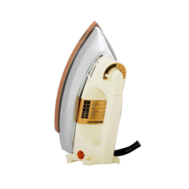 Olsenmark heavy weight dry iron easy to use makes ironing a task that you can always look forward to without any hesitation. Featuring sleek design and thermostatic control, this iron can be used for different kinds of clothes and fabrics. The sturdy base of this iron will give you a smooth and easy movement over the fabric. Highly durable, this iron is a perfect pick against your valuable currency. This heavy dry iron sports a non-stick golden teflon plate not only glides smoothly on the clothes to remove wrinkles but also does not cause additional stress to your wrists. This non-stick coating ensures that the fabric doesn't stick and get torn due to excessive heat. Hence, this dry iron runs smoothly on the fabric and checks accidental burns. Its unique design makes the task of ironing multiple clothing items simple and fast. It also features multiple temperature levels for a variety of fabrics like silk, rayon, nylon, cotton and other materials. You can regulate the temperature depending on the fabric being ironed. Heavy body for faster ironing the Olsenmark iron is a heavyweight ironing device. This is an advantage as its heavy body flattens out even the most creased outfits. Safety thermal fuse and automatic shut off excessively high temperature can ruin electrical components. In the event of thermal overloading, the thermal fuse breaks the circuit and protects it from any electrical damage. The purpose is to reduce power risk, electric shock and injuries caused due to overheating. The automatic shut off feature shuts off the iron once the set temperature is reached.