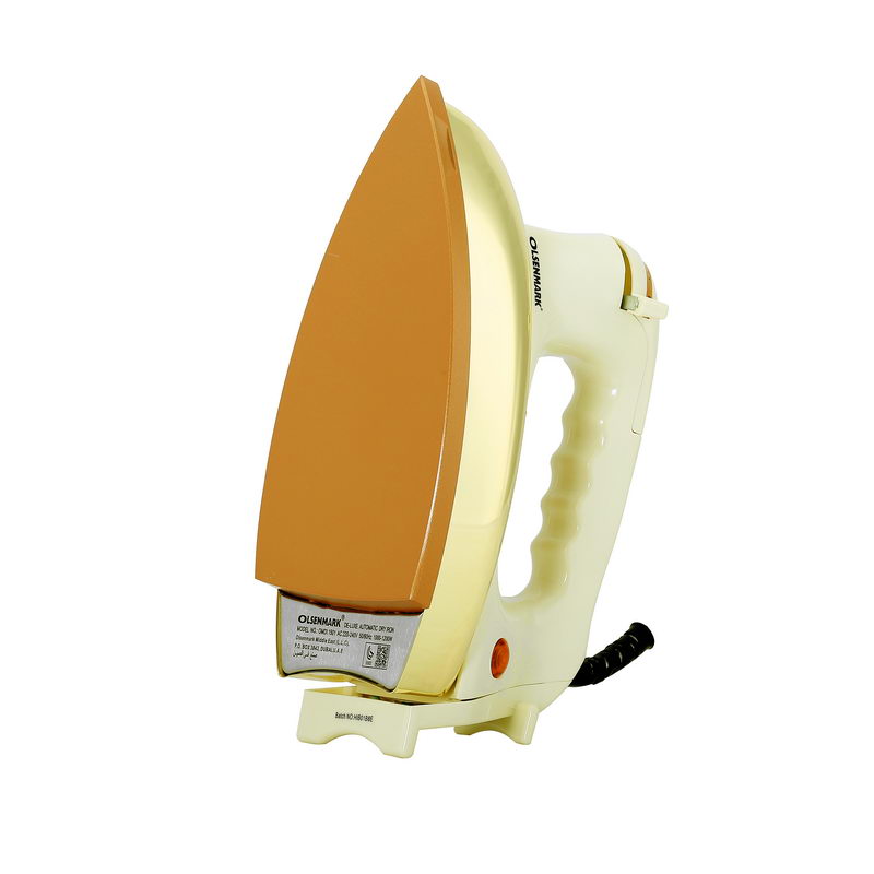 Olsenmark heavy weight dry iron easy to use makes ironing a task that you can always look forward to without any hesitation. Featuring sleek design and thermostatic control, this iron can be used for different kinds of clothes and fabrics. The sturdy base of this iron will give you a smooth and easy movement over the fabric. Highly durable, this iron is a perfect pick against your valuable currency.This heavy dry iron sports a non-stick golden teflon plate not only glides smoothly on the clothes to remove wrinkles but also does not cause additional stress to your wrists. This non-stick coating ensures that the fabric doesn't stick and get torn due to excessive heat. Hence, this dry iron runs smoothly on the fabric and checks accidental burns. Its unique design makes the task of ironing multiple clothing items simple and fast. It also features multiple temperature levels for a variety of fabrics like silk, rayon, nylon, cotton and other materials. You can regulate the temperature depending on the fabric being ironed. The Olsenmark iron is a heavyweight ironing device. This is an advantage as its heavy body flattens out even the most creased outfits. Safety thermal fuse and automatic shut off excessively high temperature can ruin electrical components. In the event of thermal overloading, the thermal fuse breaks the circuit and protects it from any electrical damage. The purpose is to reduce power risk, electric shock and injuries caused due to overheating. The automatic shut off feature shuts off the iron once the set temperature is reached.
