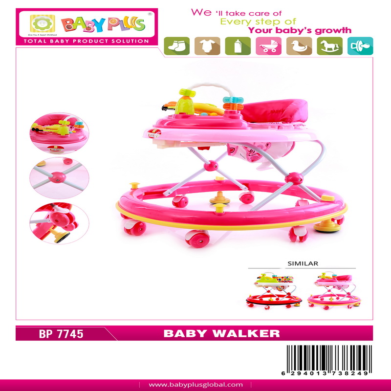 Baby Plus ,baby walker - height adjustable, musical, soft cushion height adjustable & interactive baby walker with music and play tray to entertain your child and encourage them to take their first steps. The sturdy, stable walker helps babies learn to stand and walk. Keep your baby comfortable and content with this baby walker. The brightly coloured baby walker helps your child to discover the floor get their footing and take those first steps as they experiment with moving around. Key features pp plastic/non-toxic material with nice sounds and play tray foldable & adjustable height 8 pair of wheels comfortable cushion folds flat for storage with minimum space with music the colourful front toys keep baby entertained wether you are at home or on the go, your baby will be content and comfortable in this walker. For ages 9 months and above