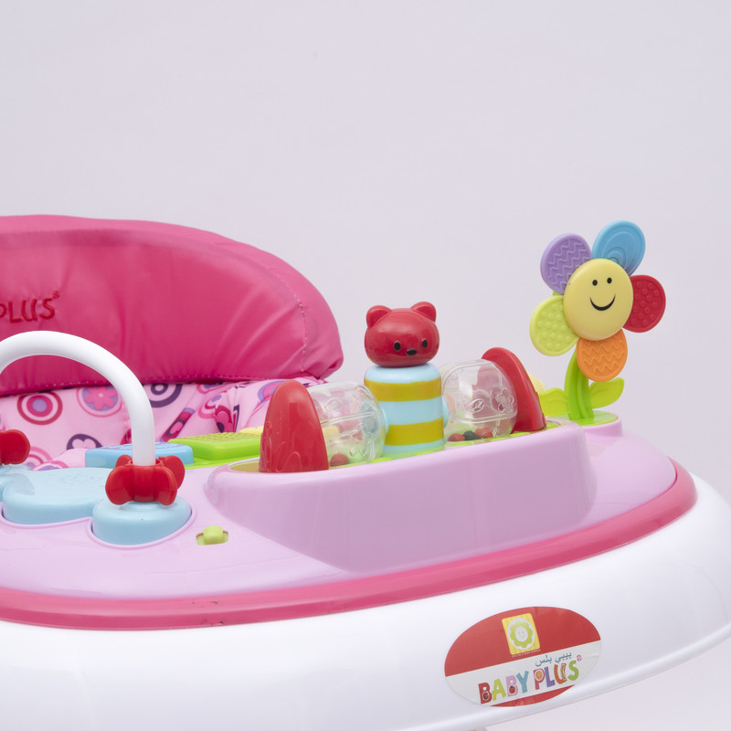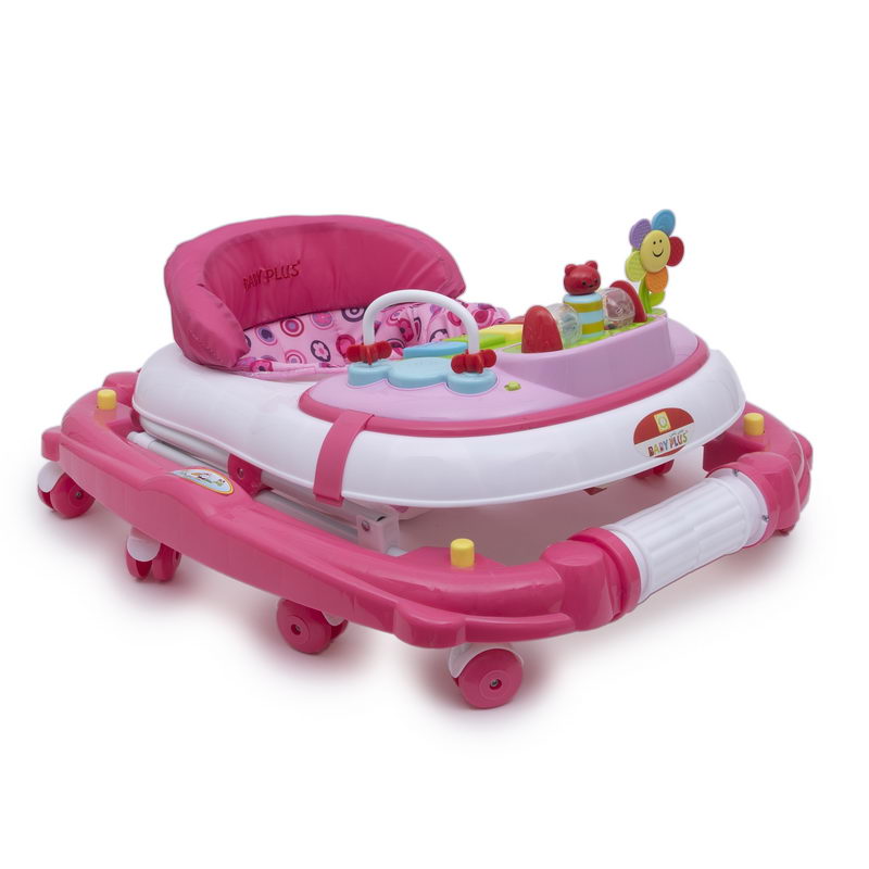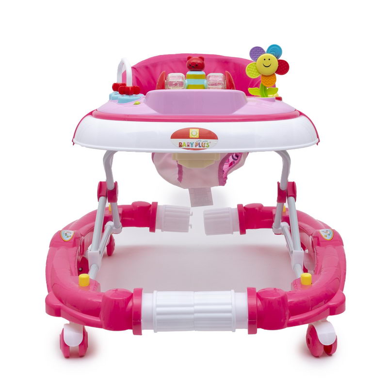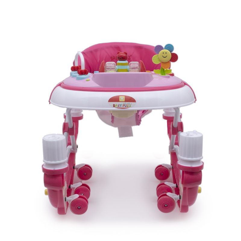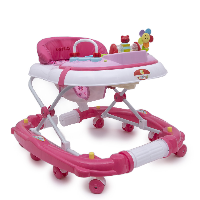 Baby Plus ,baby walker - height adjustable, musical, soft cushion height adjustable & interactive baby walker with music and play tray to entertain your child and encourage them to take their first steps. The sturdy, stable walker helps babies learn to stand and walk. Keep your baby comfortable and content with this baby walker. The brightly coloured baby walker helps your child to discover the floor get their footing and take those first steps as they experiment with moving around. Key features pp plastic/non-toxic material with nice sounds and play tray foldable & adjustable height 8 pair of wheels comfortable cushion folds flat for storage with minimum space with music the colourful front toys keep baby entertained wether you are at home or on the go, your baby will be content and comfortable in this walker. For ages 9 months and above