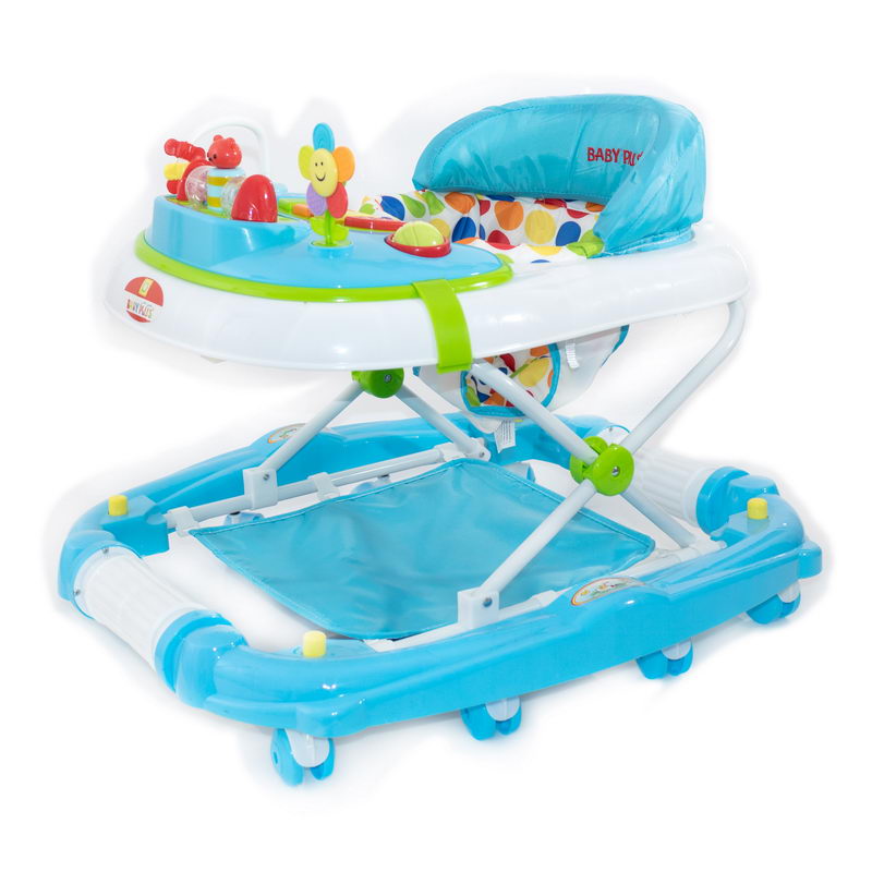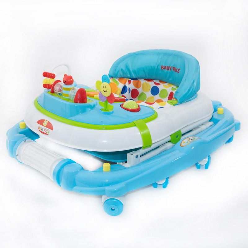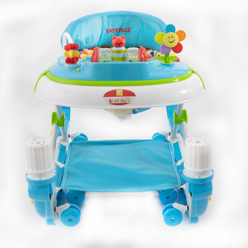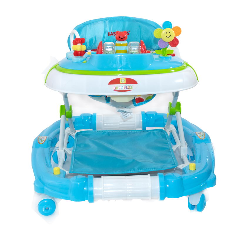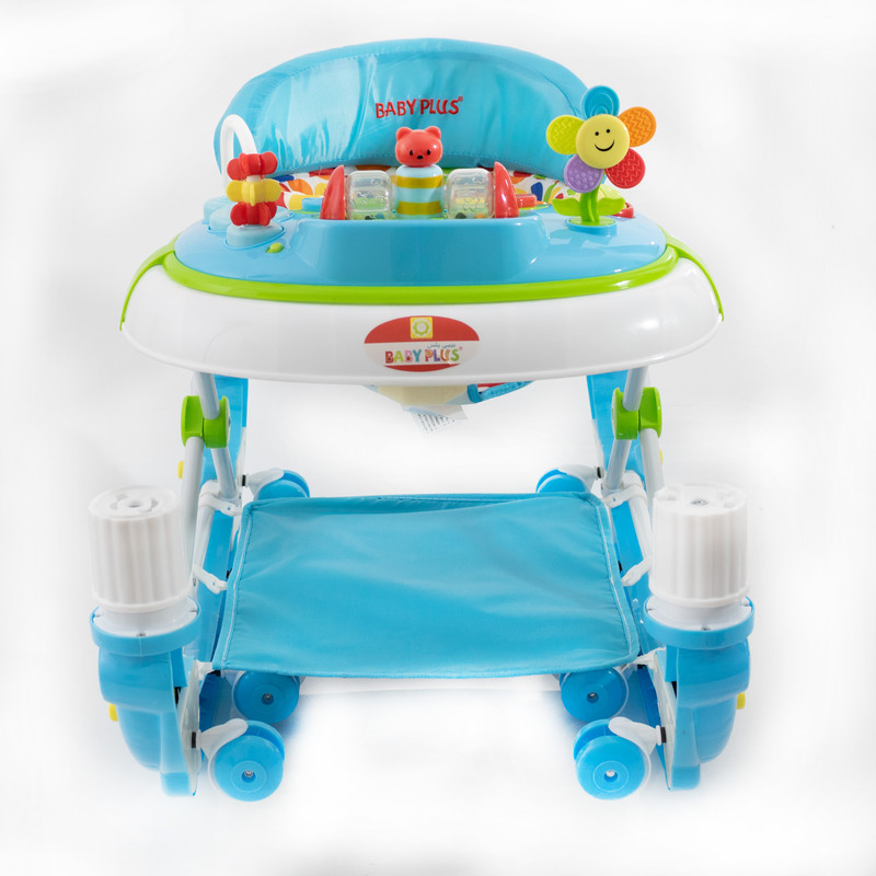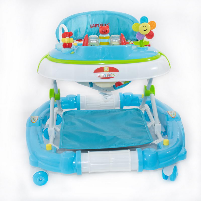 Baby Plus ,baby walker - height adjustable, musical, soft cushion height adjustable & interactive baby walker with music and play tray to entertain your child and encourage them to take their first steps. The sturdy, stable walker helps babies learn to stand and walk. Keep your baby comfortable and content with this baby walker. The brightly coloured baby walker helps your child to discover the floor get their footing and take those first steps as they experiment with moving around. Key features pp plastic/non-toxic material with nice sounds and play tray foldable & adjustable height 8 pair of wheels comfortable cushion folds flat for storage with minimum space with music the colourful front toys keep baby entertained wether you are at home or on the go, your baby will be content and comfortable in this walker. For ages 9 months and above