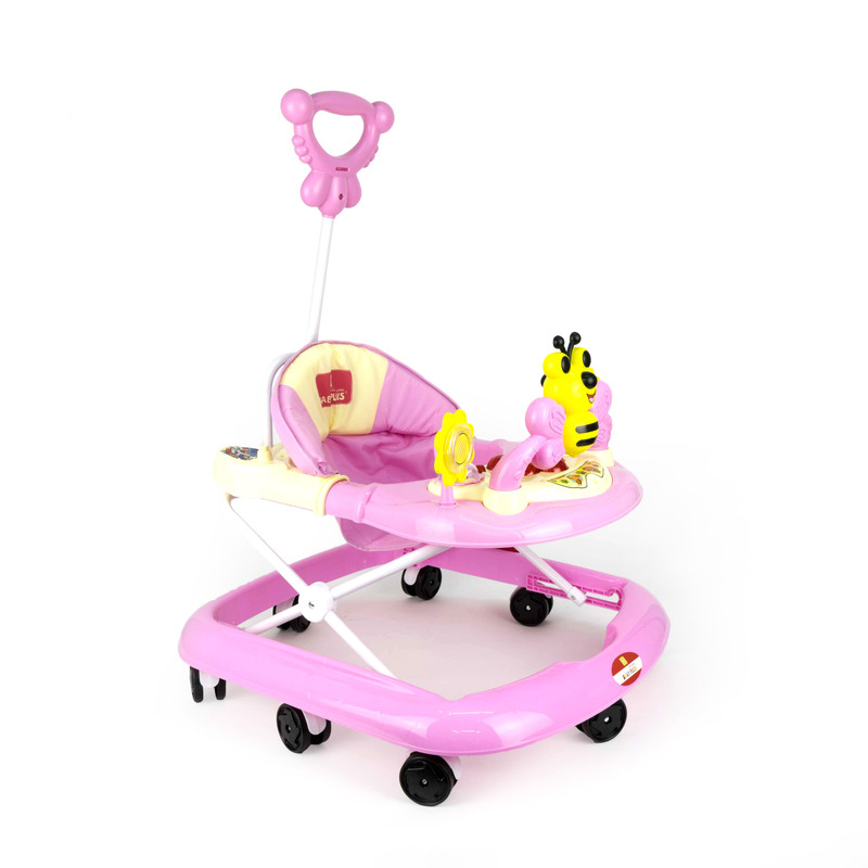 Baby Plus ,baby walker - height adjustable, musical, soft cushion height adjustable & interactive baby walker with music and play tray to entertain your child and encourage them to take their first steps. The sturdy, stable walker helps babies learn to stand and walk. Keep your baby comfortable and content with this baby walker. The brightly coloured baby walker helps your child to discover the floor get their footing and take those first steps as they experiment with moving around. Key features pp plastic/non-toxic material with nice sounds and play tray foldable & adjustable height 8 pair of wheels comfortable cushion folds flat for storage with minimum space with music the colourful front toys keep baby entertained wether you are at home or on the go, your baby will be content and comfortable in this walker. For ages 9 months and above