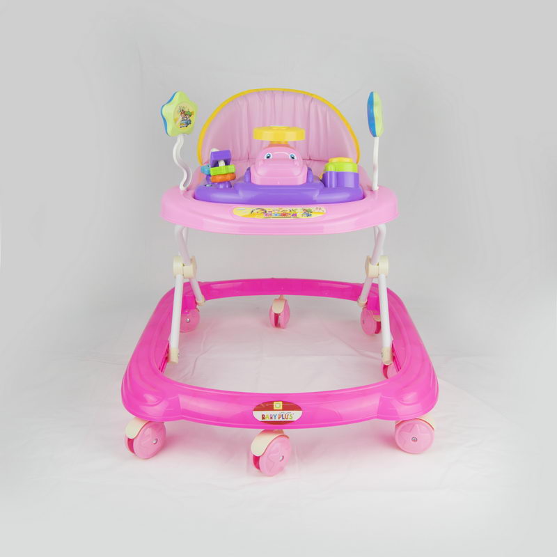 Baby Plus ,baby walker - height adjustable, musical, soft cushion height adjustable & interactive baby walker with music and play tray to entertain your child and encourage them to take their first steps. The sturdy, stable walker helps babies learn to stand and walk. Keep your baby comfortable and content with this baby walker. The brightly coloured baby walker helps your child to discover the floor get their footing and take those first steps as they experiment with moving around. Key features pp plastic/non-toxic material with nice sounds and play tray foldable & adjustable height 8 pair of wheels comfortable cushion folds flat for storage with minimum space with music the colourful front toys keep baby entertained wether you are at home or on the go, your baby will be content and comfortable in this walker. For ages 9 months and above