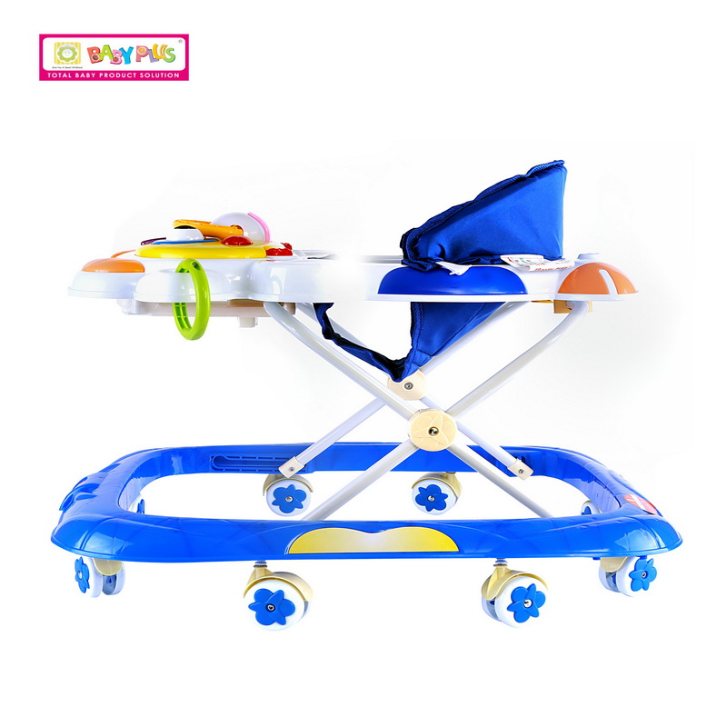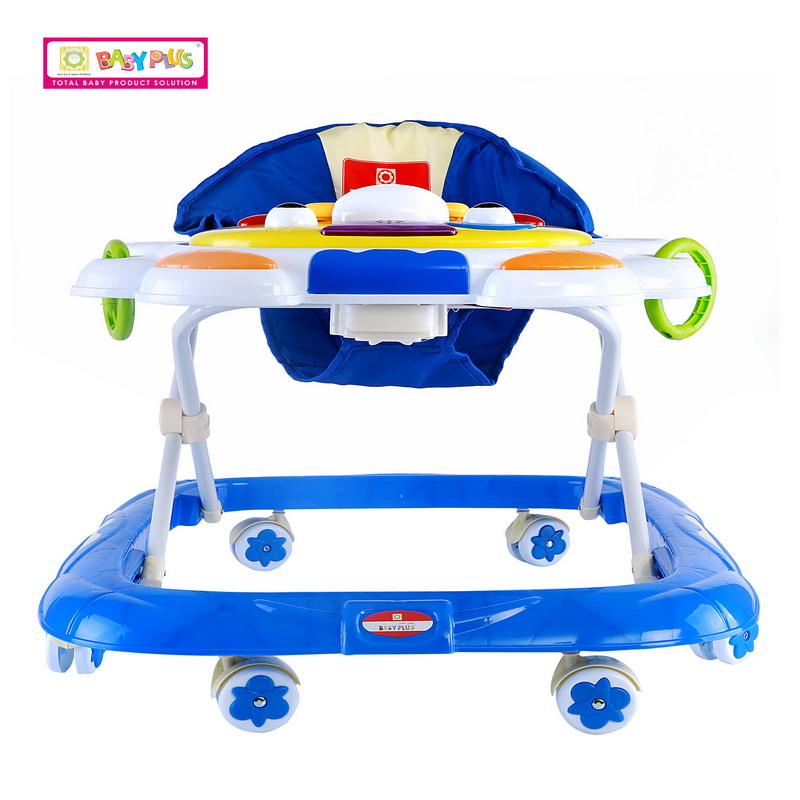 Baby Plus ,baby walker - height adjustable, musical, soft cushion height adjustable & interactive baby walker with music and play tray to entertain your child and encourage them to take their first steps. The sturdy, stable walker helps babies learn to stand and walk. Keep your baby comfortable and content with this baby walker. The brightly coloured baby walker helps your child to discover the floor get their footing and take those first steps as they experiment with moving around. Key features pp plastic/non-toxic material with nice sounds and play tray foldable & adjustable height 8 pair of wheels comfortable cushion folds flat for storage with minimum space with music the colourful front toys keep baby entertained wether you are at home or on the go, your baby will be content and comfortable in this walker. For ages 9 months and above