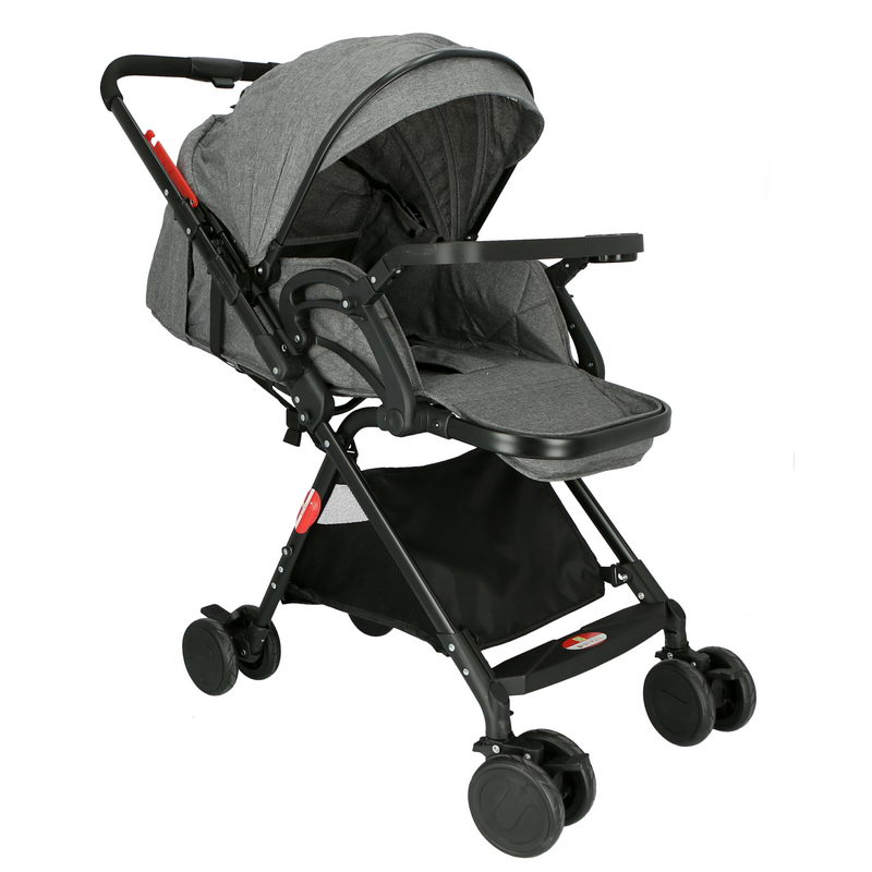Let your baby enjoy new sights and sounds by exploring the outside world in the lightweight Baby Plus BP8984-D.GREY Baby Stroller. Thanks to this stroller's canopy, your baby is shielded from the sun. It also features an adjustable backrest and a safety belt to make sure the baby is comfortable yet safe. The front swivel wheels with brakes and rear wheels with brakes add to the convenience of this baby stroller. Sturdy EVA handlebar for comfortable and safe grip. Features a fixed front bar which also works as an extra safety system.5 Point Safety HarnessThe 5-point safety harness is designed to hold your baby securely around the shoulders and the waist.Get ready to face the sunThe canopy protects your child from harsh sunlight & strong winds & looking window helps keep a watch on baby while strolling.