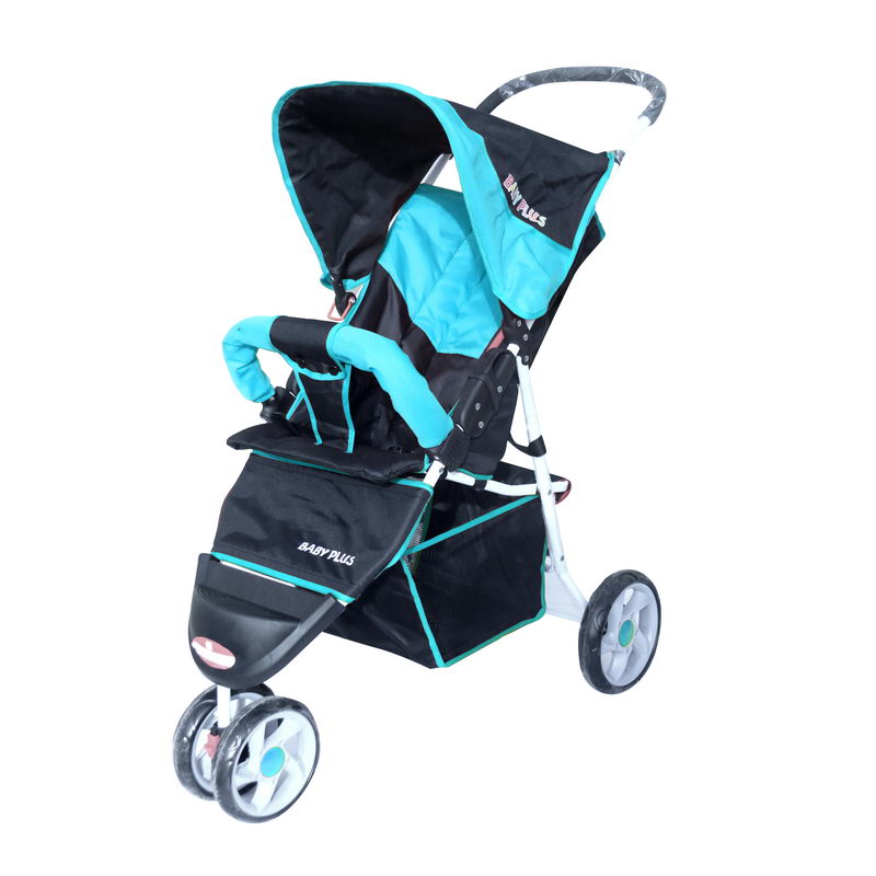BABY STROLLER also called full-size or regular strollers, are usually designed to allow babies to lie on their backs for the first few months. Some are are designed to hold infant car seats for when the baby is older. They are usually built with enclosed sides or some type of containment. Some baby strollers may have features to stop babies from slipping through leg openings.Baby Plus is stylish, light, comfortable Baby Stroller. The essence of urban mobility, lightweight, compact and nimble. The seat fully reclines and provides a comfortable ride for your baby. The one-piece height adjustable handle and lockable front swivel wheels make the stroller easy to handle for the parent. The product include a travel bag to easily carry the product. Product Description: Go out for a stroll with your little one in this baby stroller from Baby Plus. For ultimate comfort, this pram has soft cushion seat and backrest. The convenient handle of this baby stroller lets the parent push forward effortlessly. Stopping to talk with someone, Just lock the wheels with the lock mechanism, so that the pram remains still till you start walking again. There is a hood to cover the pram, so that your baby's sleep doesn't get disturbed due to bright light. Also, the front tray has two holders on which you can easily carry the feeding bottles