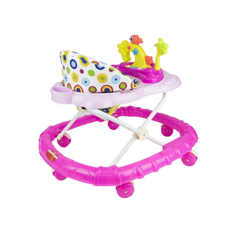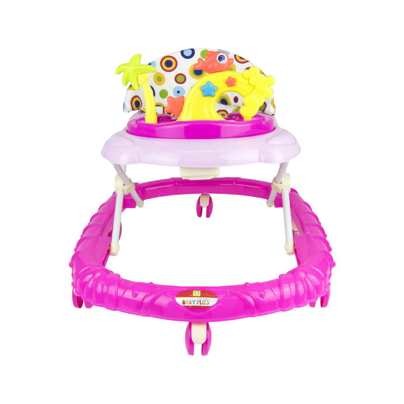 Baby Plus ,baby walker - height adjustable, musical, soft cushion height adjustable & interactive baby walker with music and play tray to entertain your child and encourage them to take their first steps. The sturdy, stable walker helps babies learn to stand and walk. Keep your baby comfortable and content with this baby walker. The brightly coloured baby walker helps your child to discover the floor get their footing and take those first steps as they experiment with moving around. Key features pp plastic/non-toxic material with nice sounds and play tray foldable & adjustable height 8 pair of wheels comfortable cushion folds flat for storage with minimum space with music the colourful front toys keep baby entertained wether you are at home or on the go, your baby will be content and comfortable in this walker. For ages 9 months and above