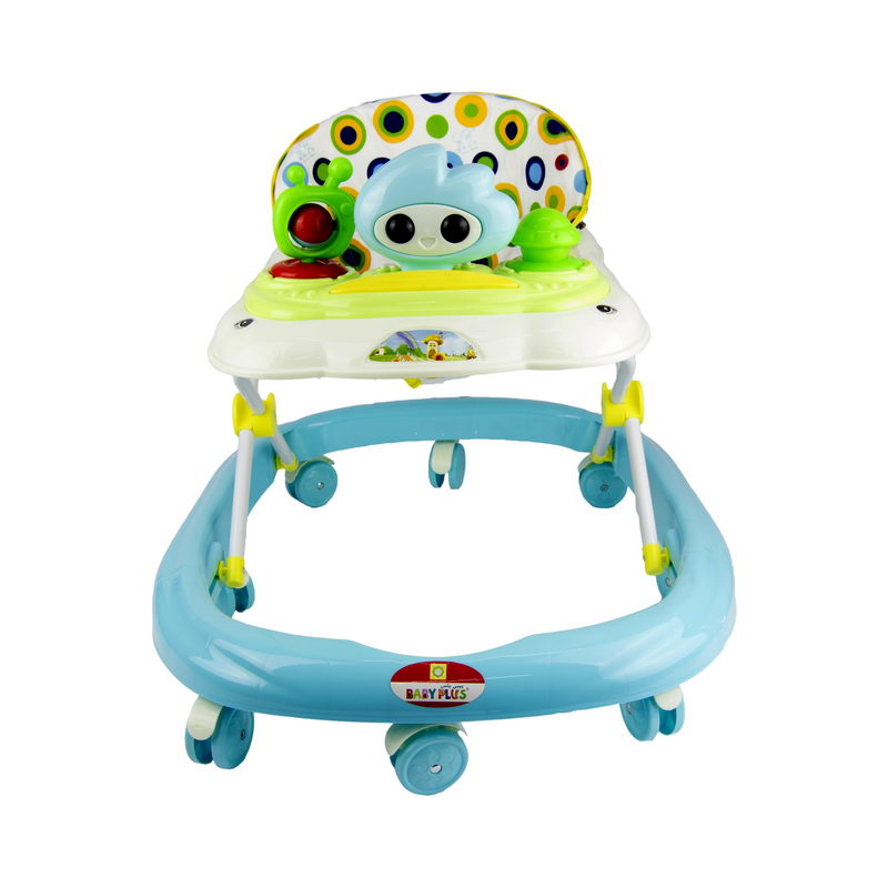 Baby Plus ,baby walker - height adjustable, musical, soft cushion height adjustable & interactive baby walker with music and play tray to entertain your child and encourage them to take their first steps. The sturdy, stable walker helps babies learn to stand and walk. Keep your baby comfortable and content with this baby walker. The brightly coloured baby walker helps your child to discover the floor get their footing and take those first steps as they experiment with moving around. Key features pp plastic/non-toxic material with nice sounds and play tray foldable & adjustable height 8 pair of wheels comfortable cushion folds flat for storage with minimum space with music the colourful front toys keep baby entertained wether you are at home or on the go, your baby will be content and comfortable in this walker. For ages 9 months and above