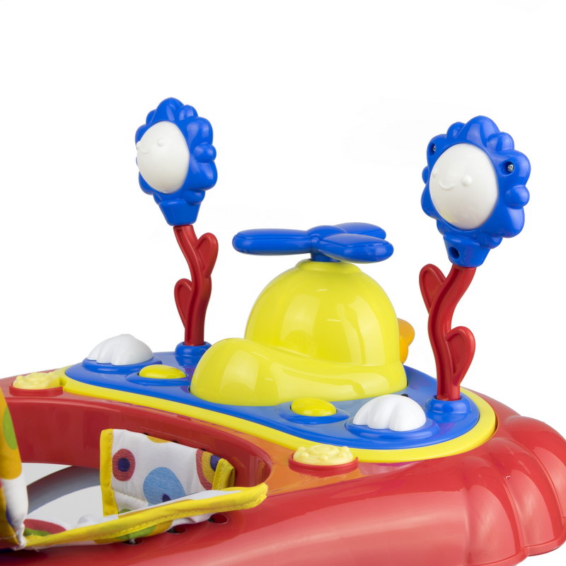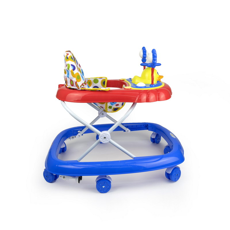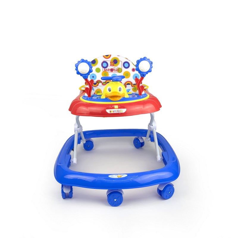 Babyplus Walker Suitable from 6-12 months (up to 12 kgs); Electronic tray with lights and sounds; Toy tray easily removes for feeding time, Folds flat for easy storage and travel; Complies with European safety standards EN 71-EN-1273; Folded size (cm) (LxWxH: 63x66x27, rip strips to reduce movement for safety;. If your young one wants to walk independently, then having this sturdy baby walker is a must. The walker is quite colourful and also has light and sound functions that will keep your tiny tot engrossed for a long time. Moreover, this walker has easy-grip strips for easy manoeuvrability. Removable toy bar with toys, Large surround tray for food or toys, Extra wide base provides superior support and stability, High-back padded seat, 3-position height adjustable, Folds flat for easy transport or storage, The walker has a well-padded seat and can be adjusted in height to suit the build of different children ensuring that their feet touch the floor correctly. The Walky Talky Walker also has front swivel wheels making it easier for baby to guide themselves around and safety akes called 'stoppers' which stop the structure when reaching a step. The play panel is detachable to play also when not in the baby walker