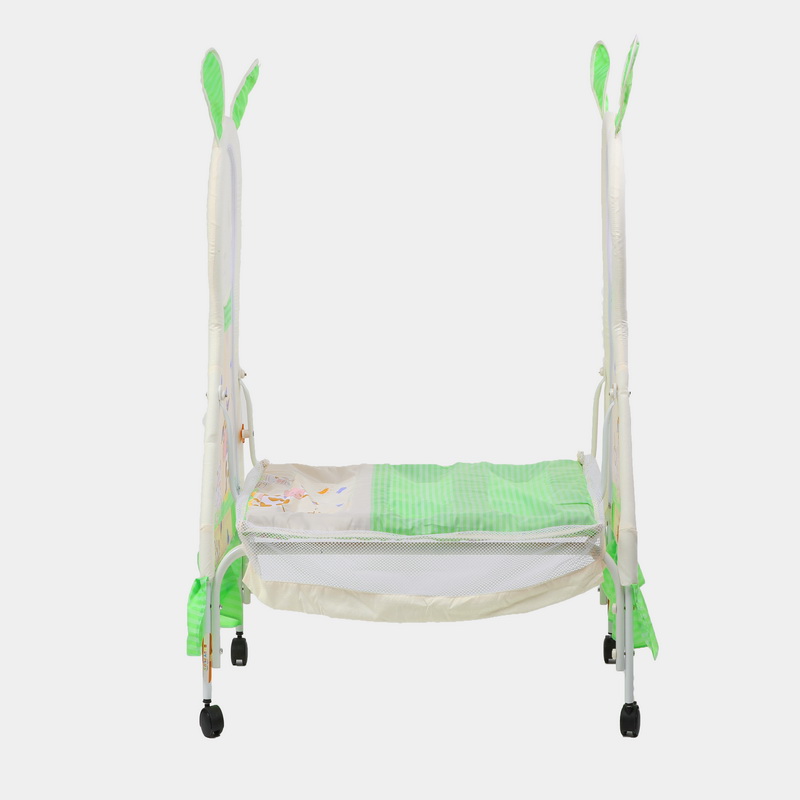 The Baby Plus cradle with swing function is the perfect product for your baby nursery. It also has wheels for easy movement of the cradle. It is designed to provide safe and cozy sleeping environment for your baby, perfect combination of simplicity and safety. When you swing your baby gently in the cradle it lulls your baby into sound sleep. The cradle features a sturdy frame that assures your baby's safety. It also comes with catchy Animal design that adds a fun twist to this crib. This crib for baby is equipped with removable mosquito net, it keeps your baby safe from mosquito bites, flies. Made from premium quality and metal which is sturdy and long-lasting.