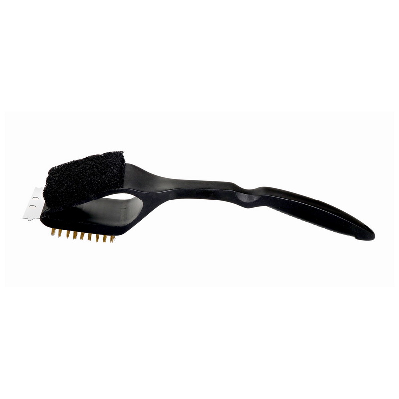 Royalford Brush 38CmAnother essential barbecue tool, with a long handle for safe cleaning and 3 in 1 features: brass bristles, plastic sponge and stainless scraper. Ideally used when the grill is still warm to remove any residual grease and food remnants from the grills surface. The plastic sponge and be used on enameled sections of the barbecue like the flame tamers and internal fire bowl; cleaning regularly will ensure a longer life for any barbecue.Strong ScraperOur grill cleaning brush comes with an extra scraper, which will make it easier for you to remove the stubborn smudgesSolid Twisted WiresThe stainless steel wires are solid twisted. It will not fall off, which keep the brush durable. You will not worry about the falling wires when cleaning.Perfect Handle LengthRoyalford grill cleaning brush has a perfect handle length. The 38cm handle will keep your hand away from the grill heat, which ensure the safety of your hand.