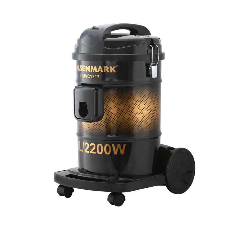 Now, easily clean dust with Olsenmark Drum Vacuum Cleaner. The new age cleaning device uses a high efficiency motor that picks up dust to provide you with clean and spotless surroundings.Light-Weight and Low NoiseThe vacuum cleaner is light-weight which makes it easy to carry from one room to another. The vacuum cleaner also makes very low noise so that you can use it without disturbing anyone.On-Board Accessory StorageAccessories can be stored on the unit to ensure they are always conveniently to hand.Compact to Move AroundThis portable vacuum cleaner is light weight and can be carried with you if you are going out. The vacuum cleaner has a 2200W motor that delivers an impressive suction that can suck out even the most stubborn dust particles. This is then stored in a collection bag with a dust capacity of 24liters. The bag can be washed if it gets too dirty.