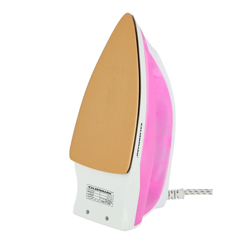 Olsenmark dry iron easy to use makes ironing a task that you can always look forward to without any hesitation. Featuring sleek design and temperature control, this iron can be used for different kinds of clothes and fabrics. The sturdy base of this iron will give you a smooth and easy movement over the fabric. Highly durable, this iron is a perfect pick against your valuable currency. This dry iron sports a golden non-stick plate not only glides smoothly on the clothes to remove wrinkles but also does not cause additional stress to your wrists. This non-stick coating ensures that the fabric doesn't stick and get torn due to excessive heat. Hence, this dry iron runs smoothly on the fabric and checks accidental burns. Its unique design makes the task of ironing multiple clothing items simple and fast. It also features multiple temperature levels for a variety of fabrics like silk, rayon, nylon, cotton and other materials. You can regulate the temperature depending on the fabric being ironed. Safety thermal fuse and automatic shut off excessively high temperature can ruin electrical components. In the event of thermal overloading, the thermal fuse breaks the circuit and protects it from any electrical damage. The purpose is to reduce power risk, electric shock and injuries caused due to overheating. The automatic shut off feature shuts off the iron once the set temperature is reached.