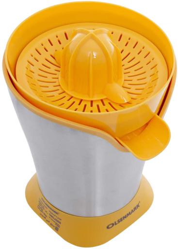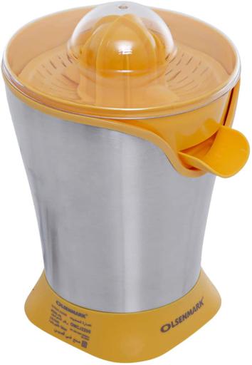 Prepare flavorful homemade juices in minutes and add more fresh fruit and veggies to your diet with this excellent Olsenmark Electric Citrus Juicer. The Electric juicer extract juice by electric squeezer with slow speed, which don't heat up the juice and preserve 100% of the vitamins, enzymes and other nutrients. It provides the pure taste of the orange.Quick and Easy MaintenanceIt's quite a small device and, with 1.2m power cable, it's easy to store either in a cupboard or on the kitchen counter. It includes a protective cover to be put over the cones after use to protect it from dust.Aesthetic and FunctionalCrafted from plastic panel & Stainless Steel Housing, this modern and stylish kitchen appliance will suit any kitchen. With the 100W motor powering the cone, you'll be able to create delicious, summery flavors quickly and with much less effort than manual juicing.