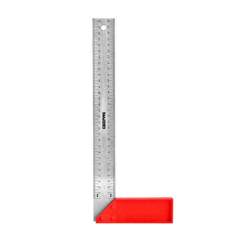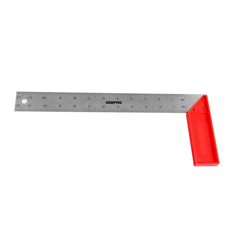 This Geepas Square starts as a solid piece, extremely stable cast aluminum tool plate. This large plate is carefully machined in multiple high RPM passes on our state-of-art CNC equipment. The result is a single piece square with a 12" blade and handle. Our manufacturing process ensures square is accurate to within one-thousandth of an inch or less along the full length of the tool. A far higher degree of the square then what is possible with the typical two-piece design. Easy to read measurement scales are laser etched on both sides of the scale. Made of hardened stainless steel, it is resistant to rust, precision scale, durable for long use. The double-side reading scale and the two-tone red and black font mark make the measurement more efficient. Practical for rafters, door framing, stair layouts, and many other applications. This building accessory is useful for creating layouts and patterns. Package contents: 1 x try the square ruler.