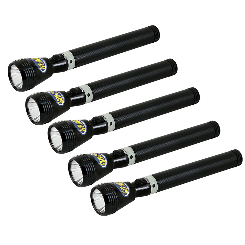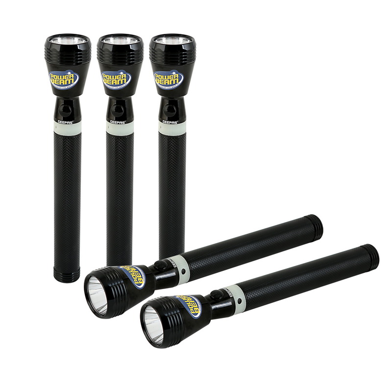 1. HIGH INTENSITY MICRO CHIP LED LIGHT- This Geepas family set of 5 Led Torch has a high intensity light with led flash light gives bright cool white light which is less harsh and gives you a day like light appearance. This torch is very much useful in emergency light in case of power failures at your home.2. HIGHLY DURABLE ALUMINIUM BODY & WATER RESISTANT-Built up with the durable extra hard anodized-aluminium body which is water proof, anti-skid, shock resistant and sustains even by rough handling.3. RECHARGE BATTERY MULTIPLE TIMES & 2000 METERS REAL RANGE DISTANCE-This torch has an immense wavelength and is capable to reach a long distance with maximum range of 2000 meters. Comes with highly durable rechargeable 1900 mAh battery can be charged up to 1500 times.4. REGULATED INTENSITY LIGHT, 4 HOURS AT SINGLE CHARGE-This torch will provide you the intensity of light up to 4 hours at single charge & as you fix the distance of the light beam it automatically provide you the bright light needed to that distance to give you clear view.5. AUTO WAVELENGTH SETTING, GLOWING BODY - This torch is very easy to use you will just need to rotate the body anti-clock wise to adjust the light beam distance as per as your requirement.6. PACKAGE Includes - Includes 5 set of flashlight, switching adaptor and battery.