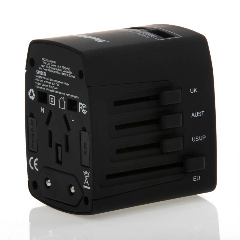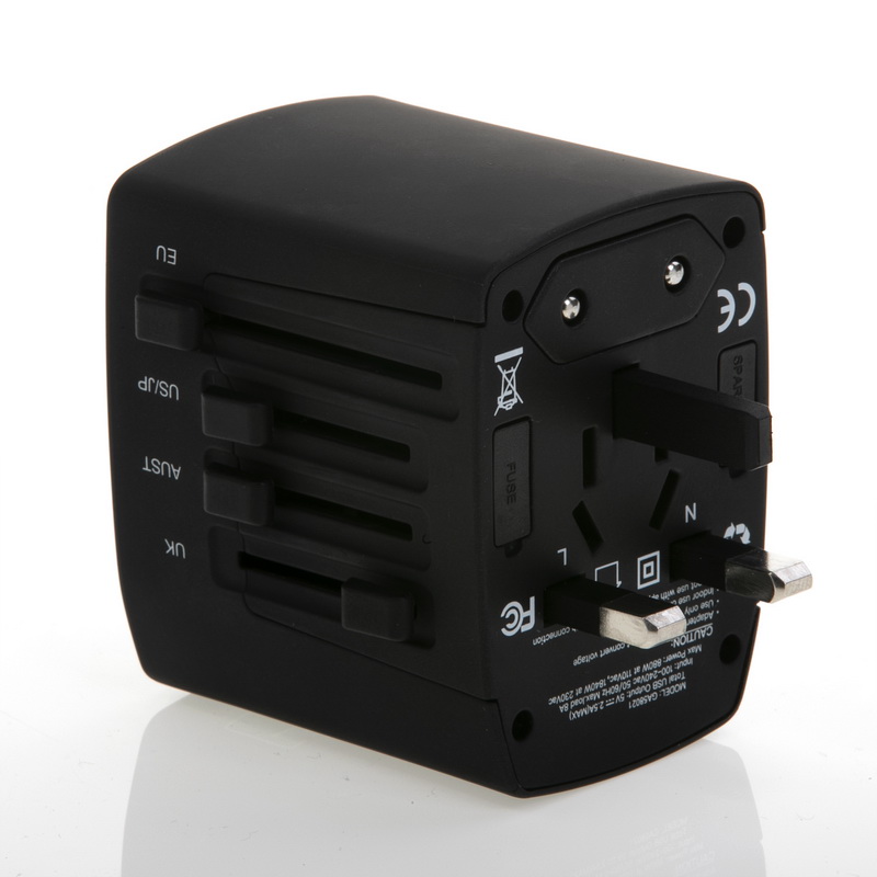 Traveling is an adventure and sometimes a part of life. We tend to make this experience more comfortable and reliable for you.As we live in an age of internet and technology having communication devices on is common while traveling. For a single tour, you might have a laptop, a camera, cell phone and some other device on you.Multiple Socket Plugs - It has 6 different socket plugs to be fixed in various switchboards. While traveling to different countries, you visit many hotels or a relative's house. Due to cultural, environmental and technology differences, living already isn't normal when you are out.Two USB Ports - The adapter has two USB ports each with an output of 5 Volts and 2.4 Ampere. The voltage can be adjusted, and it is safe for use for a variety of smartphones and cameras.Two Fuses 8A - For protection and durability purposes, it has two built-in fuses.Compact And Portable - This adapter has the shape of a mini box. It can be easily put in your travel bag, and it doesn't take up much space. It only weighs a 100 grams. It has the dimensions 705063mm. Since it is lightweight and compact, it can easily be moved around.Rubber Coated - The outside is coated with rubber. It makes it sturdy and protects it from damage and breakage.Material: ABS+PC - The adapter is made from ABS+PC. It stands for Poly-carbonate Acrylonitrile Butadiene Styrene. As the plus sign signifies, this material hones the properties of both ABS and PC. It has the heat resistance of PC and flexibility of ABS. This material is strong, rigid and prolongs the lifetime of the device.