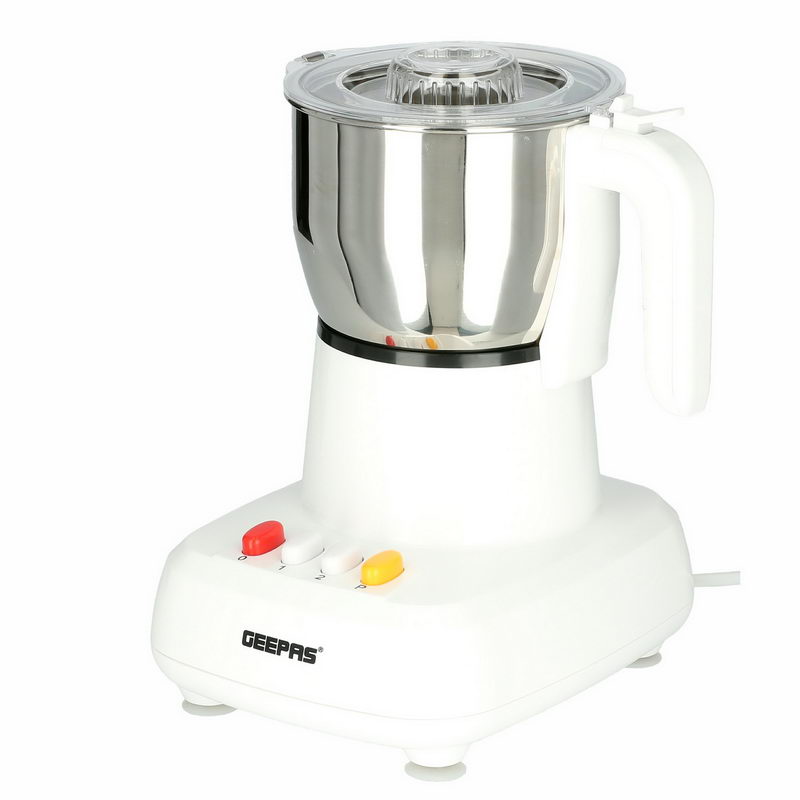 Geepas Coffee Grinder - 600W Electric GrinderStainless Steel Blades for Coffee Beans, Spices & Dried Nuts GrindingThe stainless-steel blades will help you get all the flavors out of your coffee Arabica or Robusta beans helping you achieve that great coffee taste with less hassle. Stylish and practical the 600 W Coffee Grinder with 300 ml capacity is easy to use and incredibly versatile.High-power motor, high working efficiency, and fine particles give no residue after drinking, delicate taste. Multipurpose - including coffee beans, nuts, herbs, grains, spices, sugar, etc., as appropriate.The versatile unit can also be used to grind all types of dry spices. The grinder has a neat, compact design, which makes it easy to store away when not in use. The built-in cord storage keeps your surfaces free from clutter and simplifies the storage of the device and prevents the breakage of the cord.IDEAL FOR MULTIPLE USES - Use this coffee maker grinder for nuts, coffee beans, espresso beans, spices, seeds and anything else that needs ground up. As well as fresh coffee beans you can use this grinder to crush and grind herbs and spices, nuts, seeds, oats, even curry paste. It can handle seeds like poppy seed, as well as small amounts of breadcrumbs.