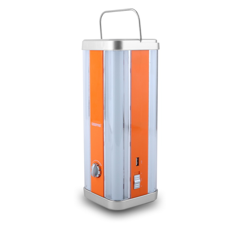 1. GEEPAS RECHARGEABLE EMERGENCY LANTERN - Geepas presents you with a rechargeable lantern, it is easy to carry as it has a compact size and can fit your travel bag with ease. With its brighter light and long-time performance, it is ideal for camping as well as sudden power outages. This lamp uses Hi-Power 4000mAh battery and requires 6 to 8 hours to charge completely.2. SOLAR INPUTS - No worries if you are out for campaigning, just plug in the solar input to get it charged without any power or far from the technology.3. HUGE POWER BANK - It has a large capacity of 4000mAh rechargeable battery by which you can charge all the gadgets (phones, cameras, tablets and more) for multiple times in emergency or power cut off. This battery takes nearly 8 hours to get it charge fully.4. HIGH AND LOW BEAM LIGHTS OPTION - This Geepas rechargeable lantern has a dual setting option which provides an option to use low power and high power. It works for 4 hours continuously in a single charge.5. ENERGY EFFICIENT - It consumes very less energy without compromising with working hours and its Led's brightness. It saves your money and counts be very helpful gadget in emergency.