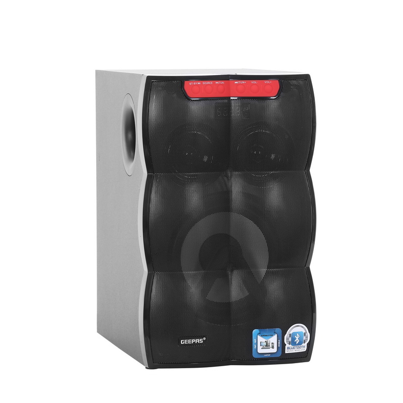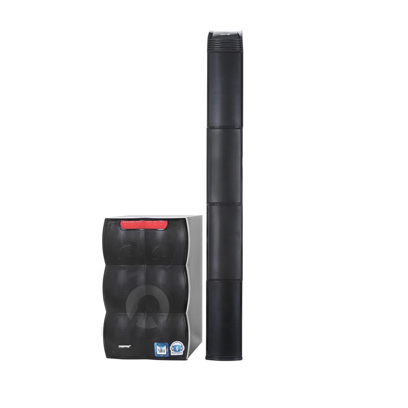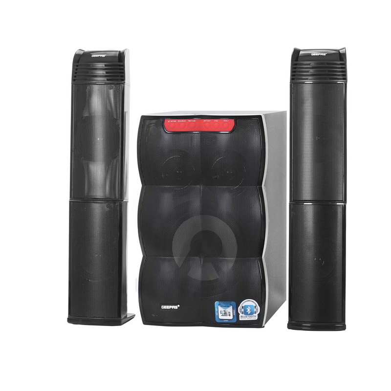 1. IMMERSIVE 4.1 SOUND, DIGITAL DISPLAY - This 30000 Watts PMPO 4.1 speaker system delivers deep, rich clear sound. Four speakers plus one sub-woofer provides audio you can hear and feel. And digital display to easy setting option.2. 30000W ROOM FILLING SOUND - This 30000 Watts Peak power 4.1 speaker system delivers deep, rich surround sound. Five speakers plus one sub-woofer provides audio you can hear and feel the premium bass beats to the next level.3. EASY CONTROLS, VOLUME KNOB - Easily access power volume and select the source to use to hear your favourite music. Customize your experience by tuning the bass with the remote control. Provided with the adjustable manual knob for volume.4. VERSATILE CONNECTIVITY - The speakers come with multiple inputs, allowing you to connect by using 3 components by which you can experience the great sound effects like USB, Bluetooth and SD.5. RGB LIGHT - The contemporary music sound activates the strobe lights which creates fascinating fancy designs all around, building a pure enjoyable party atmosphere.