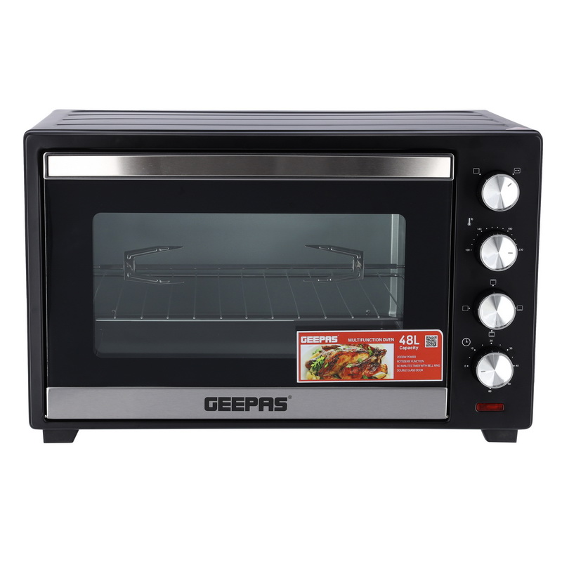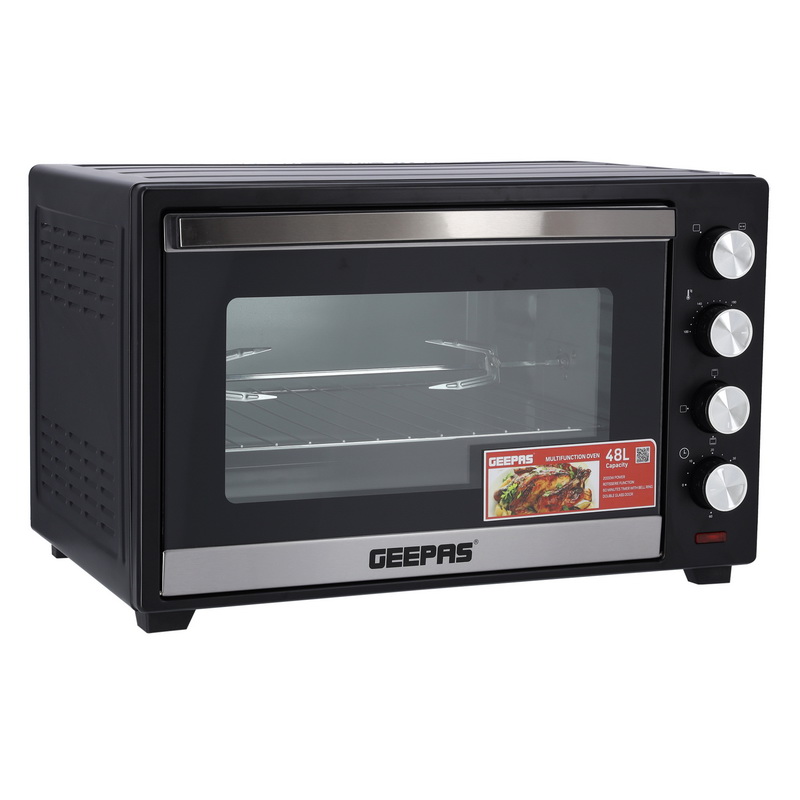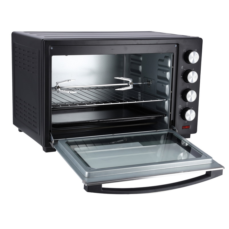 60 MINS TIMER AND SHUT OFF BELL - For your convenience, a special switch is built into the appliance that allows you to detect the time until the end of the cooking process. You can turn on the electric grill, set the timer and leave the appliance to cook by yourself. At the end of the cooking process, you will be reminded of the corresponding call.BEAUTIFUL AND SMART DESIGN - The advantage of this compact cooker is also its simple and beautiful appearance. The surface of the modern machine is completely white and the individual parts, such as selectors, are unobtrusive gray. The small size of the white oven allows you to place it on a table or on a small cabinet. It is perfect for any kitchen and complements your interior.TOUGH DOOR - Through the glass door, you can observe the cooking process of your dish. Thanks to the two layers of glass, the temperature will be maintained inside the baking machine. The dish will remain hot for some time after cooking.ROTISSERIE FUNCTION - With this 48L oven, you have the unique opportunity to taste delicious meat from the fire, while at home. The kit with the device includes special accessories for rotisserie cooking. All you need to do to get a delicious chicken or steak is to string the meat on a long hard core and place it in this mini grill.