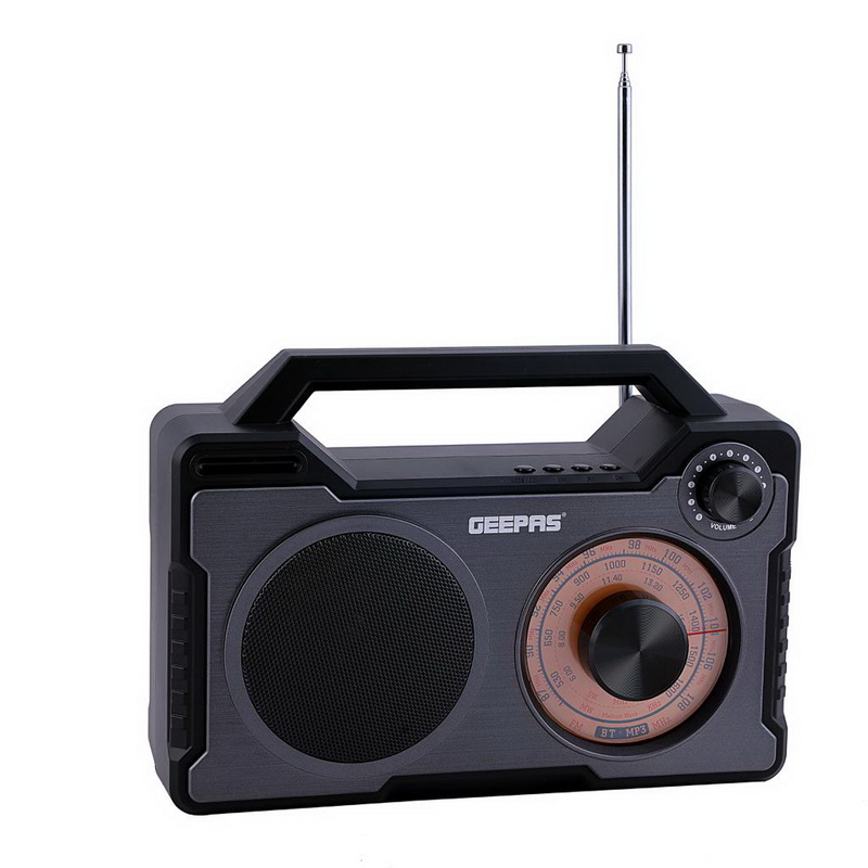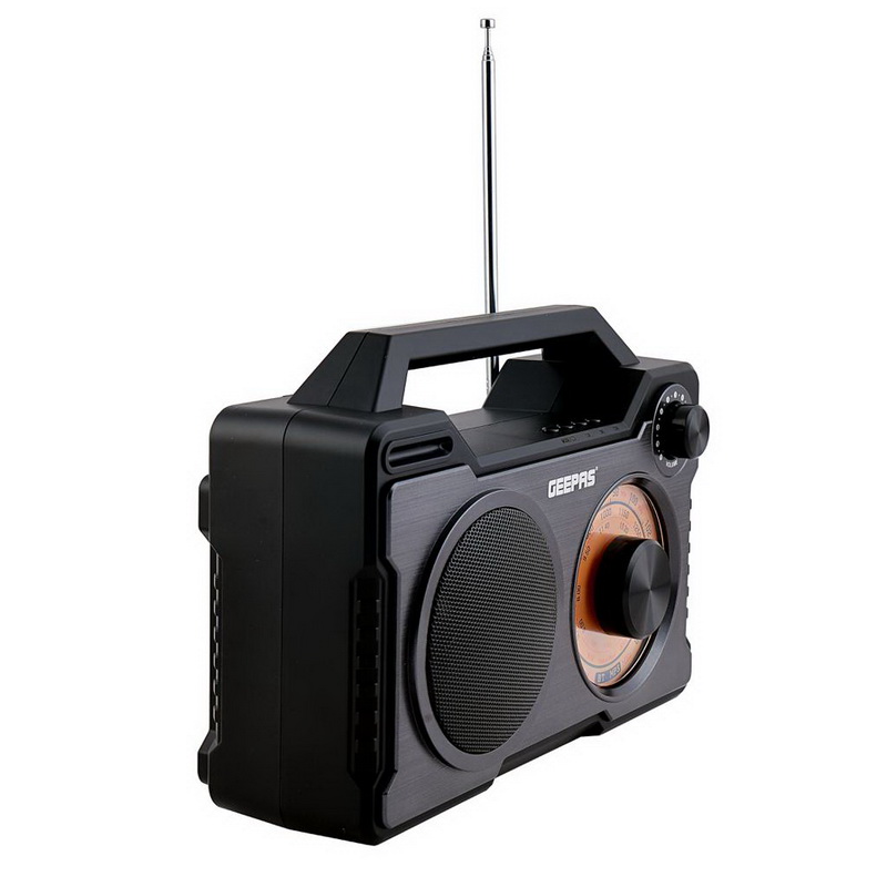 Geepas Rechargeable Radio | USB/TF/MP3/WMA Player| Built-in Lithium BatteryGeepas Rechargeable Radio is a multifunctional device to meet all your needs in one. It supports USB/TF/MP3/WMA Player, thus making it multifunctional. Now you can listen to your favorite radio channel with ease. It has a long-distance range of 10 meters. Just connect it via Bluetooth and keep it anywhere in the 10-meter diameter. No need for setting up an entire wire system. You can stream music wireless from your PC / phone / tablet via Bluetooth. Kids and elder people can listen to their favorite stories and songs via Micro SD card mode. You can enjoy favorite music/radios via FM radio mode. With one click, the device will auto search and save all available stations. Also you can manually select and save your favorite stations by pressing the number buttons.10 Meters Bluetooth Range | For Emergency Use | Portable - Connect the USB cable as an antenna to enhance signal for some enclosed environment. Experience your tunes tailored to you, with the natural, rock, pop, classic, jazz and soft music tones under Bluetooth and Micro SD card mode. Thanks to the lightweight and small design with additional hand strap enables it very convenient to take along to anywhere. Like driving between your home and office; plays any MP3 / WMA / WAV format audio files in SD card mode