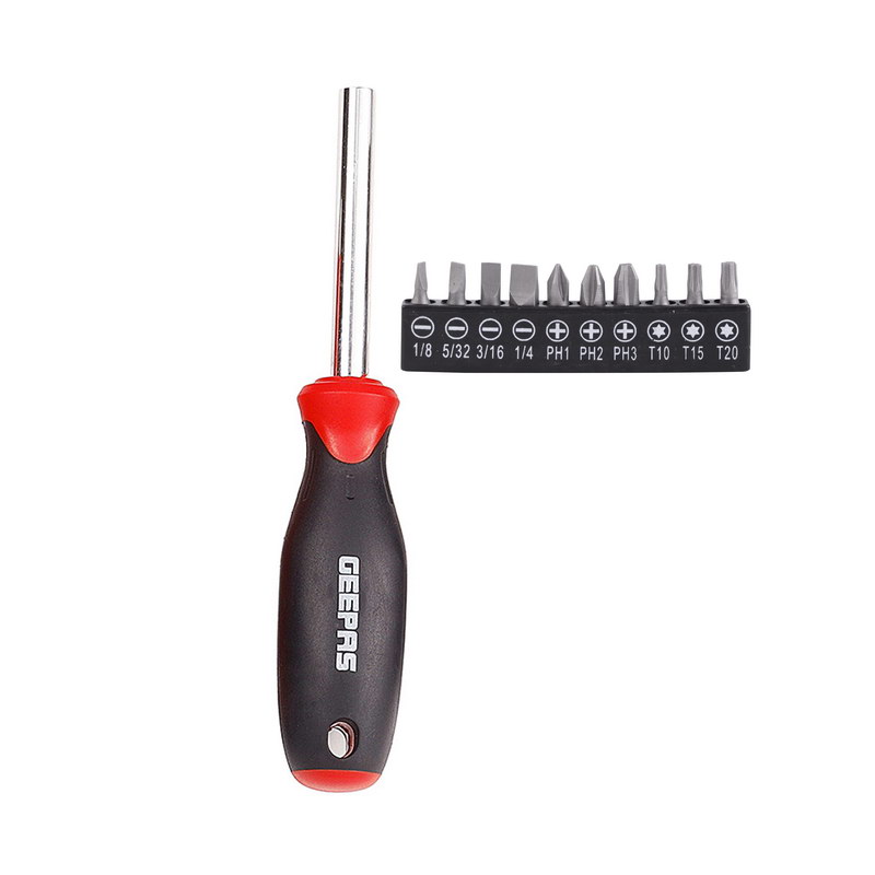 Not sure what tools do you exactly need for your next DIY project? don't worry, Geepas 17 pcs tool set provides you with the perfect selection of tools you'll be needing in any of your DIY home projects and measurements. The tools are professionally designed to give you the ultimate touch your work needs. The package contains 17 accessories. Exceptional cutting tools an 8'' scissors and an 18mm knife made up of stainless steel. Achieve the clean and sharp result using the expert tools. You can use them for almost all sorts of household cutting purposes.Geepas Mini 17Pc Tool Set is a collection of the ultimate reliable tools that suit your everyday needs. Be it a repair, a fixing task or a DIY project, these are must-have tools in almost any of such jobs. The material used in all of these tools is CR-V steel. Starter set with most commonly reached for hand tools to carry out various light duty repairs, maintenance and DIY projects around the home and garden. Ideal essential home Kit for new home owners as a gift or when you start your adventure with DIY and need a good starter kit.Most Used DIY Repair Hand Tools - A clever selection of most commonly reached for tools used for repair and maintenance tasks around the home, office, yard, garage and gardenMulti-Purpose - Whether it is measuring, hanging pictures, working with screws, cutting, assembling furniture, electrical, computer this kit has you covered.