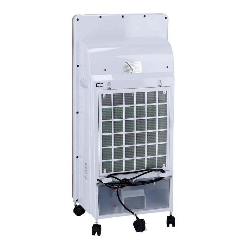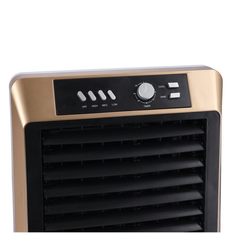 1. FRESH DESIGN, 8L WATER TANK WITH 2 ICEBOX - Unique Water Tray and Filter design, perfectly solve the problem of water leakage and the dual icebox. It gives you a cool breeze of air for a longer time without worrying about adding ice frequentlykeep you always get cool fresh and healthy air.2. EASY TO CARRY AROUND WITH PORTABLE SIZE -It has a compact body design and moving castors using durable materials, so it is light and tiny. Also, with newly added hidden handle and easy to carry with its wheels.3. SAVING & SAFE - Low energy consumption same as the power consumption of a light bulb, uses no gas, much cheaper than running a Freon air conditioner in Hot Summer Days. No blades exposed no possibility to hurt people and totally safe for use by kids or pets.4. IDEAL FOR HOT & DRY CLIMATES - Where the air humidity is low like South-western, Midwest of the United States, air cooler brings the temperature down through water evaporation and adds moisture to dry air. It Comes 2 pcs ice box which will cool the air quickly and makes you feel comfortable even in hot summers.5. AUTO HORIZONTAL, MECHANICAL VERTICAL SWING - The cooler has an auto horizontal swing of the cool air and even gives you the option to adjust the vertical angle of the air swing manually. Easily cools down your room quickly.