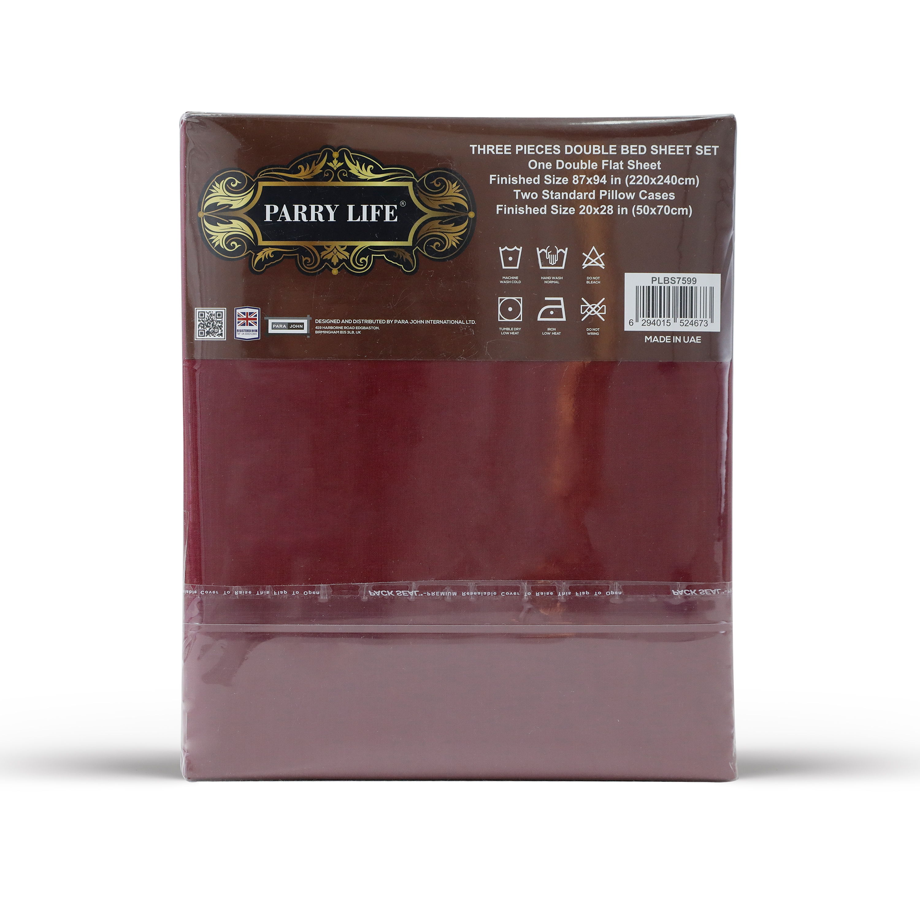 PARRY LIFE Double flat Sheet 3 PIECES -90GSM MICRO FIBER - Machine Washable Breathable Fabric- Elastic Corners - Wrinkle and Fade Resistant - (200X240)