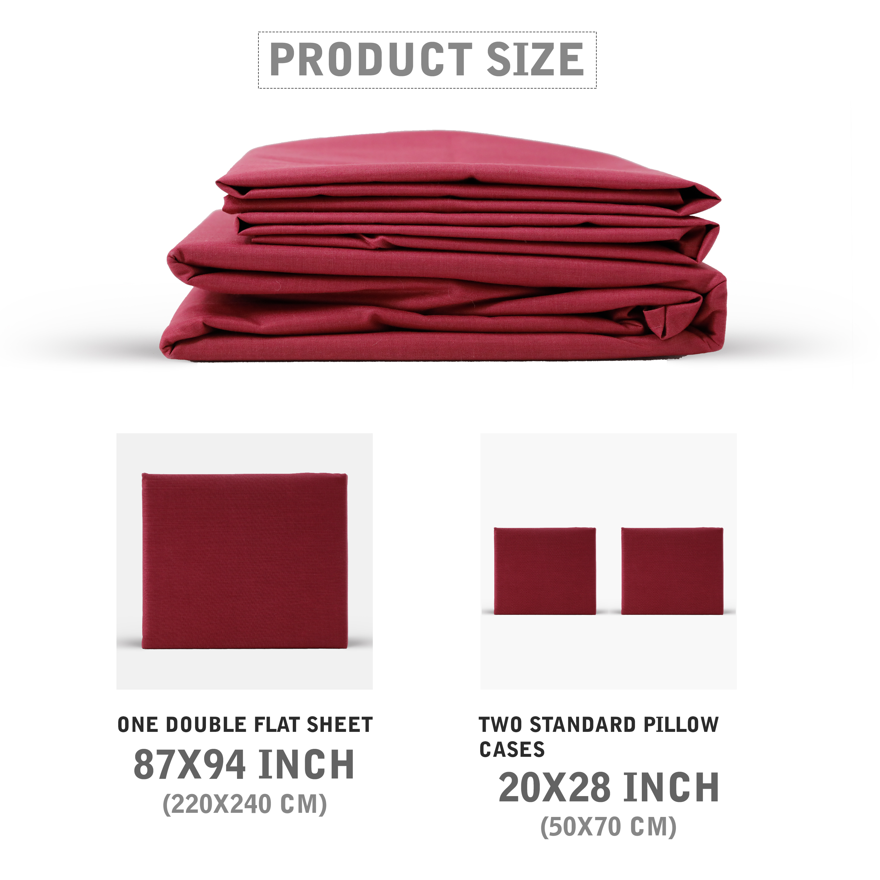 Product Description COMFORTABLE BEDDING FOR AN EXTRA HOUR SLEEPING MATERIAL: The 3 PIECES Double flat Sheet is made from 90GSM MICRO FIBER which adds the longevity and durability, and also makes it no colour fade. FEATURE: The Double flat Sheet features in its elegant tailoring: all-around lasting elastic and is convenient for you to fasten your mattress firmly in right place. FINE STITCH STRONG AND DURABLE - The stitches are meticulous, without thread ends, and the workmanship is excellent. The corners have super elasticity, suitable for the mattress, will not fall off. DISTINCT HOME DECORATION: Comes with all you need to dress a bed, this charming fitted bed sheet adds a luxurious touch of elegance to your room - The unique designs match well with various colour palettes to cooperate all your other decor accessories, transforming your room to bright and cheery in a matter of minutes.  FIT LIKE A DREAM: Unlike normal bed sheet, Fitted Bed Sheet are designed to fit snugly over your mattress and do a much better job in covering - The elastic bands given around the deep pocket sheet help hold them in place and hence reduce the chances of sheets gathering on one end of the bed overnight. SUPERIOR MICROFIBER SELECTION: Made from 100% polyester fabric with 90GSM MICRO FIBER , the effortlessly stylish Double flat Sheet is an example of exquisite finish, making your bed sheet the object of fancy for everyone looking for an upscale living - Fitted bed sheet will saves your time in maximum wrinkle-resistant superior features