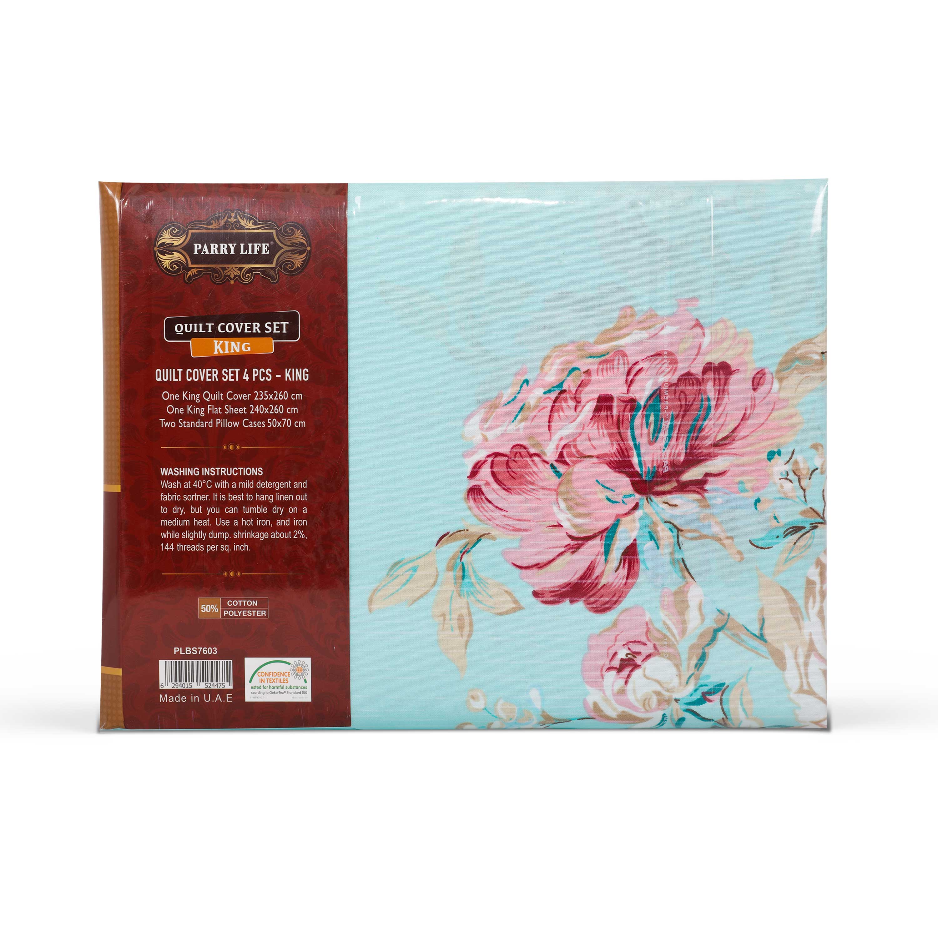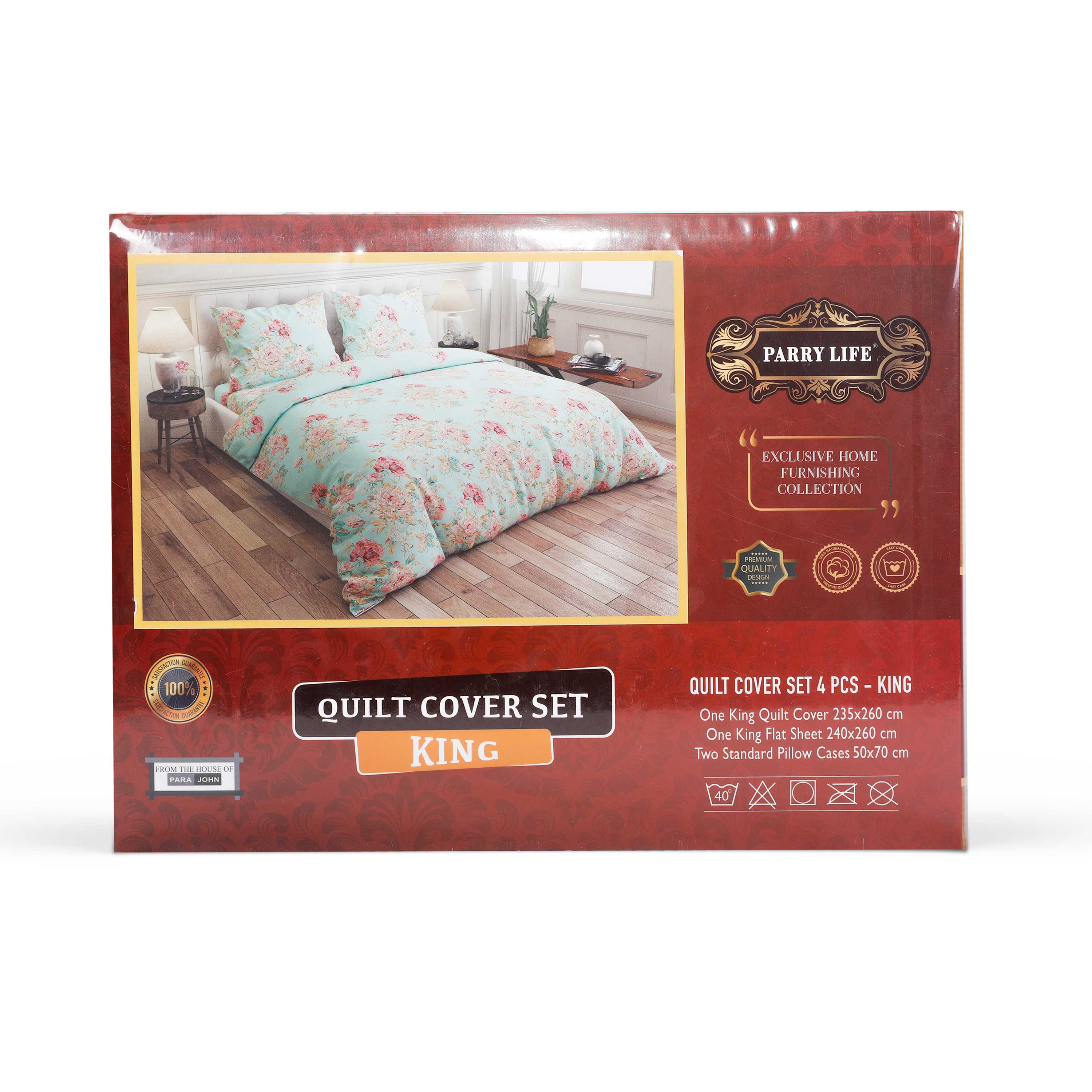 PARRY LIFE Quilt Cover Set - Duvet Cover Set, 4 Pc - Flat Sheet, Quilt Cover, & 2 Standard Pillow cases Set for Bedroom - Quilt Bed Set, Super Soft Polycotton, Throws for Sofa Fluffy Blanket Bed