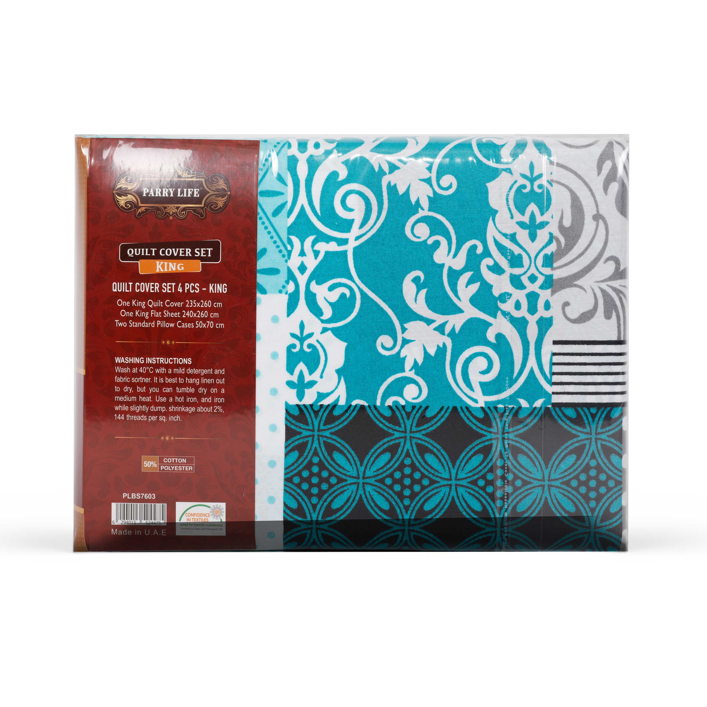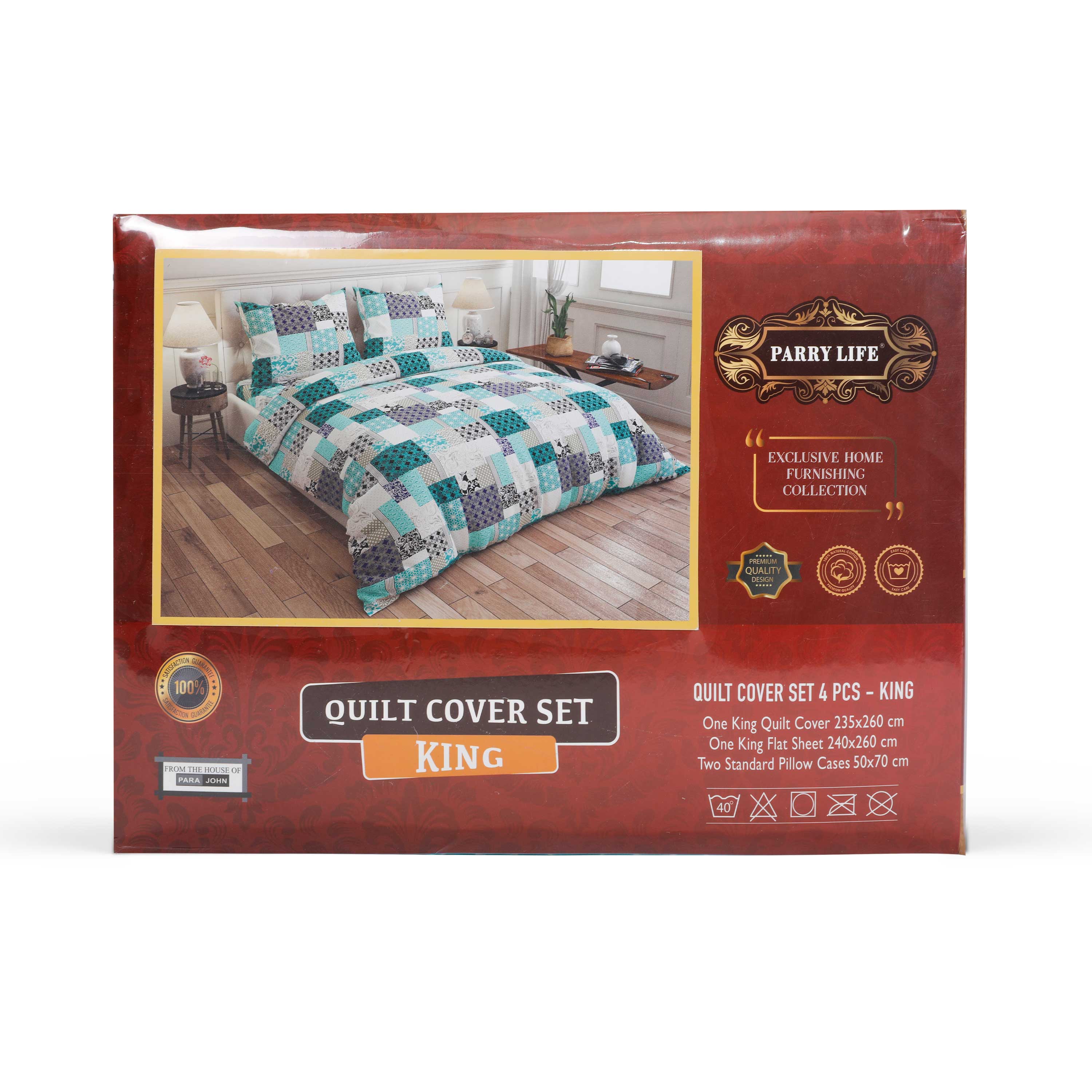 PARRY LIFE Quilt Cover Set - Duvet Cover Set, 4 Pc - Flat Sheet, Quilt Cover, & 2 Standard Pillow cases Set for Bedroom - Quilt Bed Set, Super Soft Polycotton, Throws for Sofa Fluffy Blanket Bed