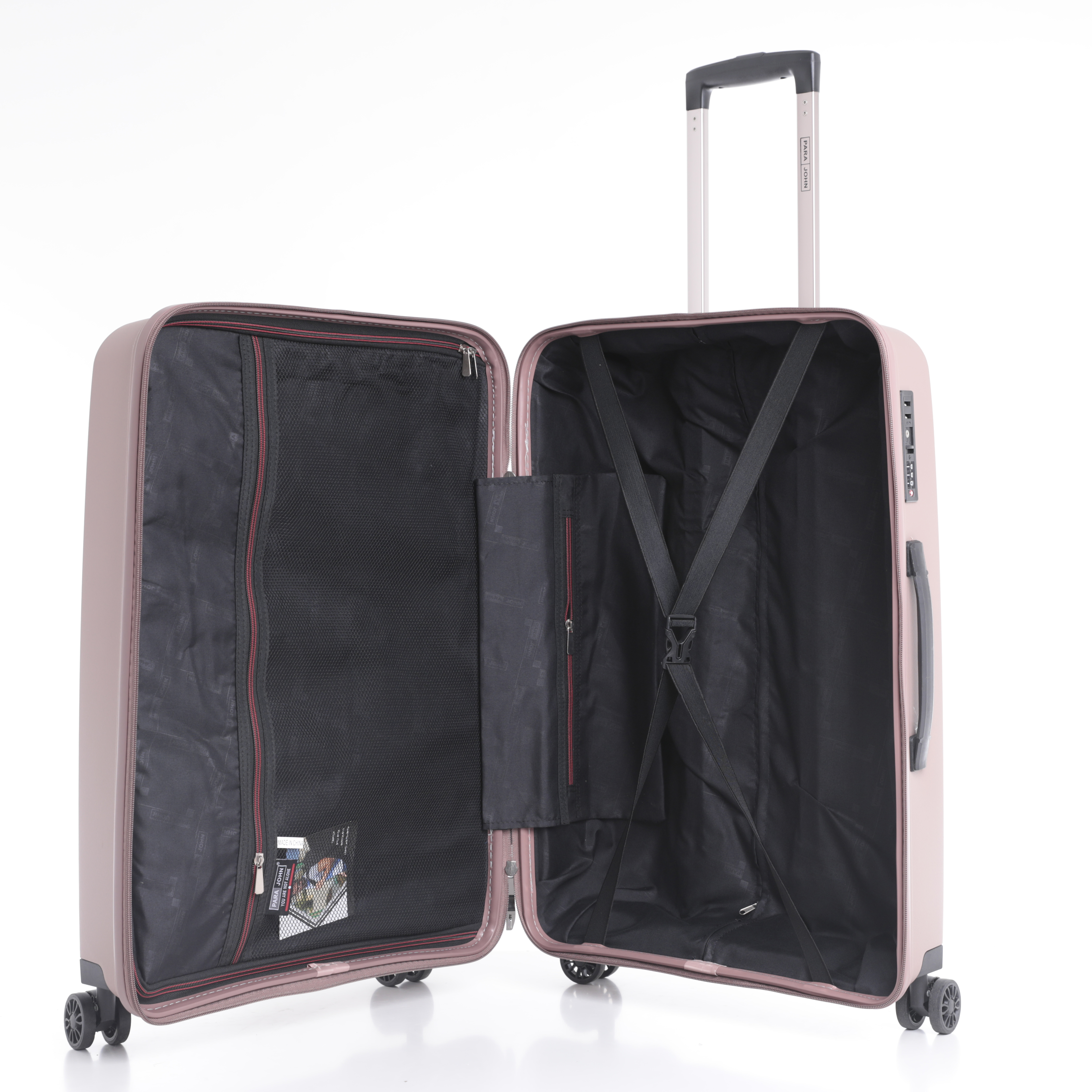 Parajohn Luggage Spinner Bags, Set of 3 (20'', 24'', 28'')For a Stress Free TravellingA great choice for international travel, these stylish hard-shell spinner luggage are very convenient for carrying - The luggage bags also works well for weekend getaways or five-day business trips, offering enough packing space to hold clothes, toiletries, and a pair of shoes.The suitcase benefits hugely from its ABS shell as it is strong, durable and highly scratch-resistant - yet also light enough to keep the weight of the suitcase down so you can pack more of your things. It is highly suited to the rigours of modern transportation and rough treatment from baggage handlers.Four 360 spinner wheels allow the suitcase to move seamlessly, can be effortlessly rolled beside you - no need to drag your heavy luggage behind you. The double-tube retractable handle makes it easy to control the suitcase. The handle can be retracted when not in use using the handy push-button release mechanism.The smooth, chunky zippers make it easy to open and close the suitcase, and can be secured together using the 3-digit combination lock(TSA) supplied with the suitcase. Top and side grip handles make it easy to load and unload. The interior features packing straps to keep the contents in place during transit. It also features a zipped divider, with an additional zipped mesh storage pocket.Cabin SizeA great choice for international travel, these stylish hard-shell spinner luggage is very convenient for carrying - The luggage also works well for weekend getaways or one- to two-day business trips, offering enough packing space to hold a few changes of clothes, toiletries, and a pair of shoes according to the 3 bags.Interior!Bottom: Elastic cross ribbons with Smart-Fix buckle system and mesh side pocketTop: zipped mesh divider, and additional pocket