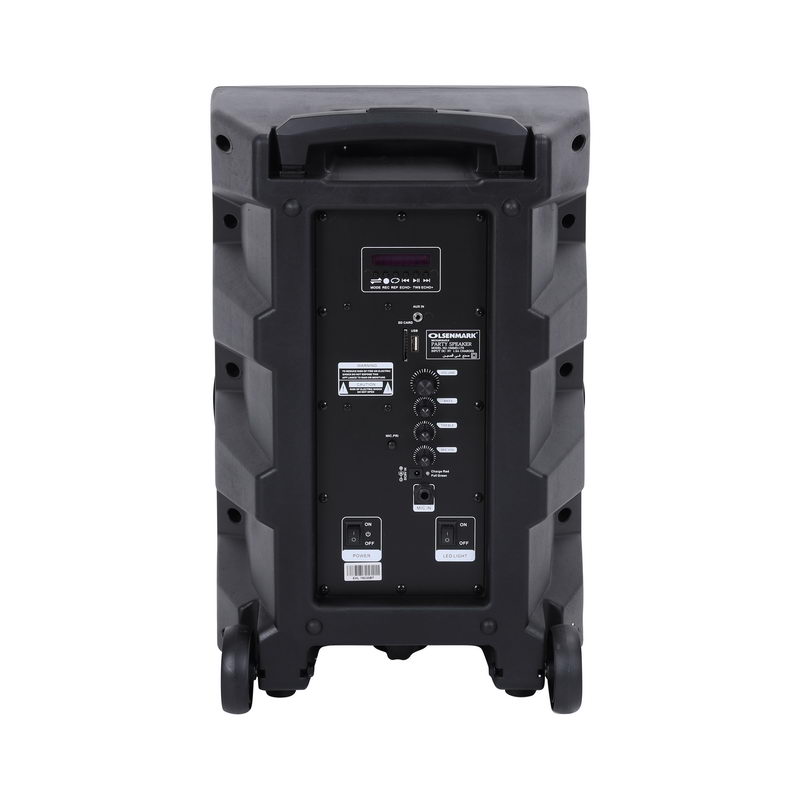 Enjoy music with great clarity with the Olsenmark speakers. It produces pristine sound that allows you to appreciate every nuance of your favorite tune. Featuring a whole lot of connectivity options like USB, SD, FM & Remote control gives multiple functioning and can be connected via USB, has a Micro SD card slot. It also has FM radio. Now you can listen to your favorite radio channel with ease making music streaming a great experience. Its comes with one wireless microphone for karako turn it up a notch with the wireless microphone for karaoke and recording sessions as you enact your favorite artists best songs, have a wild time with the Olsenmark Party Speaker. LED lights element adds a subtle allure that enhances your visual and audible experience. Alternating light patterns will move along with the sounds of the music to delight your senses and add a special touch to the songs you know and love.