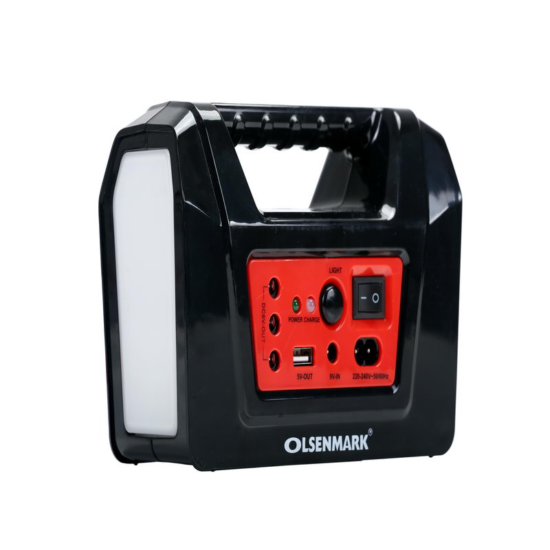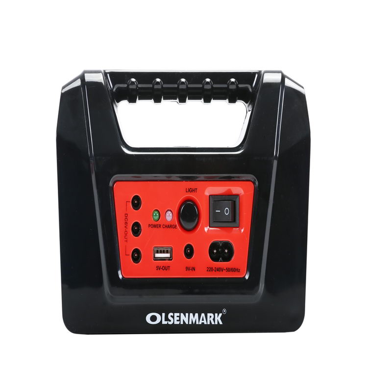 The Olsenmark power caster is a new portable power station with a battery capacity of 6V, 4.5Ah, pure sine wave output, one AC wall outlet, and one USB output, and 2 ways of recharging (solar / wall ). Unlike a traditional diesel generator, Olsenmark power caster is quiet and clean, with no fumes or noise, making it perfect for camping sites, outdoor parties, boat life, and road trips. The power caster comes with a LED bulb & LED emergency light. With its brighter light and long-time performance, it is ideal for camping as well as sudden power outages.Portable, Lightweight & Carry HandleThe Olsenmark Power Caster is portable and lightweight with a carry handle for flexibility and light in dark wherever and whenever you need it. It is compact and wonderfully portable, so you can take it anywhere you need the light.Mobile Charging PortThis power caster with a built-in 6V 4.5Ah lead-acid battery can be used as a power bank. The standard USB interface on the side of power caster is suitable for most electronic devices.Multi Protect Security SystemAn advanced security system protects you and your device from overload, short circuit, and more.Solar RechargeThis Power Caster can be recharged from the Sun with Solar Panel with DC 9V solar connection (Solar Panel not Included).