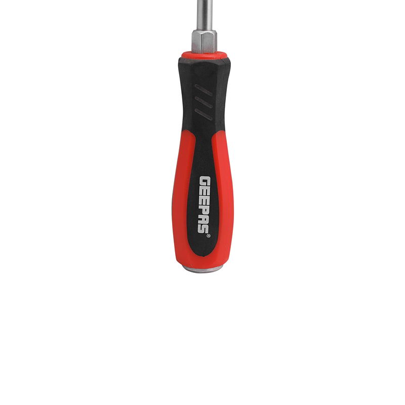 Geepas Screwdriver can be used in heavy duty works like construction and demolition. They can withstand hammer hits. The head have the correct size to fit in the slots.Comfortable Grip - The handle is designed to have a comfortable and controlled grip. It fits your hand with ease and allows smooth rotation.Material - The material used in is CR-V Chromium-Vanadium Steel. This steel is sturdier and long-lasting as compared to the usual steel. The tips have black tips due to certain chemicals. They make the tips resistant to wear.Highly Durable Tools - Due to the high durability, this screwdriver can be used by technicians. Mechanics and home hobbyists. Its an excellent addition to your toolbox and has a classy design. Gives long-term performance and are available to you at an affordable price.