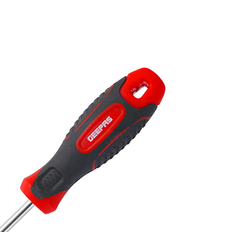 Have you ever had one of those moments when you couldn't tighten the screw of your newly arrived TV brackets properly and later suffered dearly because of it? Or did you ever have to try to stick a pen or hairpin to open your broken calculator just because you didn't have the right sized screwdriver?Such emergencies are a norm when it comes to this age this of tech. However, not having the right screwdriver can irritate you in the smallest of needs. Geepas Screw Driver is just that, a regular everyday use collection of screwdrivers that every toolbox should have.SLOTTED SCREWDRIVER, CHROME PLATED - The driver is slotted and comes in size (6.5*75mm) and can be used to fix or open up most of the appliances and gadgets. Of course, they are equally useful in putting up shelves and tightening up window panes.CHEMICALLY BLACKENED TIP - The tip of the screwdriver is tough due to certain chemicals. This prevents their oxidation and maintains the shape.MATERIAL CR-V STEEL - They are made up of CR-V material, also known a Chromium-Vanadium Steel. The driver has a core made of vanadium. It provides strength and durability to it. Chromium prevents corrosion of your tool and helps prolong its use.RUBBERIZED HANDLES WITH HANGING LOOP - The handle is rubber insulated and shaped to have a strong, comfortable grip. The tip is blackened chemically. This makes them resistant to wear off. Their magnetic function helps you get a better hold of the screw. The cool design adds up a dashing look in your arsenal. Now, the annoying task remains no longer irritating. With the right tool, you can get all that stuff done in a flash.