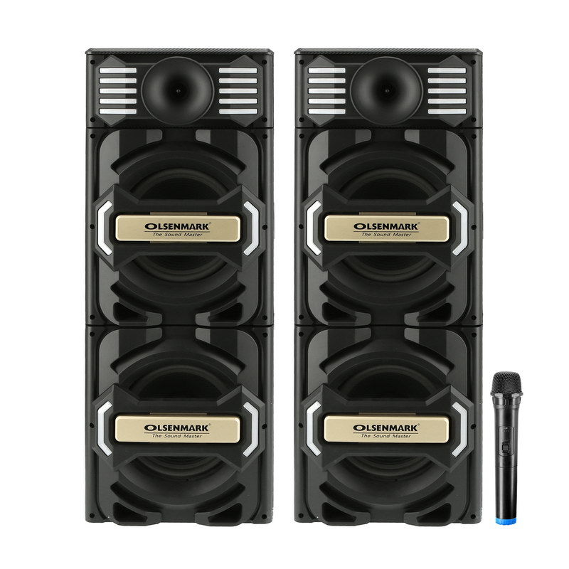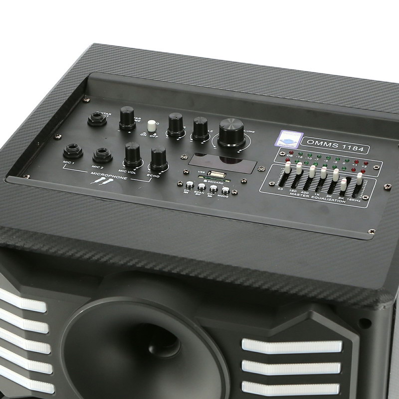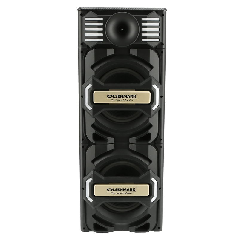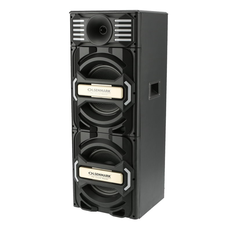 Olsenmark OMMS1184 Professional Speaker, 2.0 CH with multi connectivity options like USB, SD, FM, Bluetooth and individual controls for volume, treble and bass adjustment. It has an LED display with speaker grill comes with beautiful disco lights and a glossy finish to make a statement. It also comes with a built in stereo FM and a fully functional remote control. Easy to UseThe speakers can be placed anywhere, thanks to the compact design with stylish grill, these are a perfect addition to any desk. Once plugged in, the speaker will light up. Wooden and PP Material PanelThe outer body of this speaker is made of Wooden and PP material, for its strength and durability. This device is resistant to breakage and built to give a long-term performance.Perfect Sound SolutionThis speaker set is your stylish sound solution. For every sound with high peak power makes this set perfect for listening to music, watching YouTube videos, or casual gaming. Easily adjust the volume and bass on the sub-woofer.
