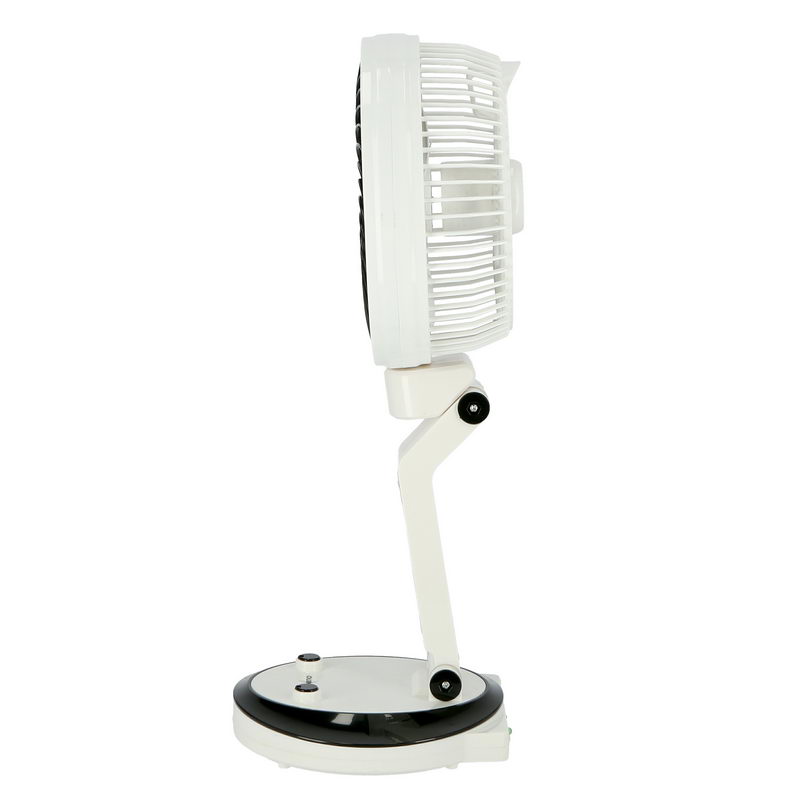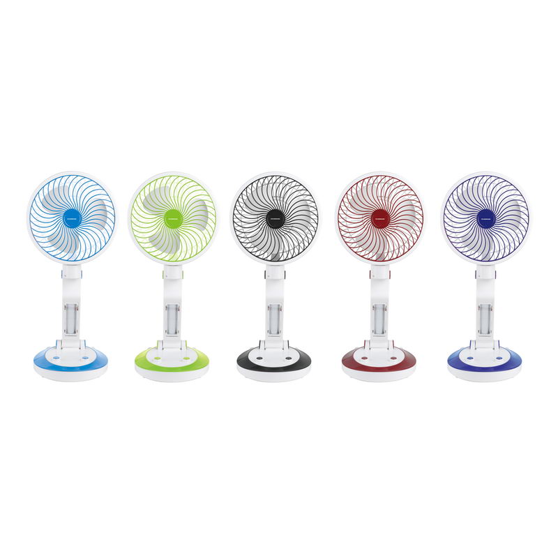 Summer cool wind! Feel free to enjoy!Olsenmark Desktop Rechargeable Fan with LED lets you experience the natural wind, brings you a cooler experience, and instantly get rid of the heat of summer. Modern look, Easy to store, convenient to move, USB Rechargeable Fan, Side night light makes this Olsenmark Desktop Fan unique from other normal fans. Bright LED Light for illumination use in the night or when you are camping in the summer. This battery-operated fan uses a lead-acid battery with a capacity of 4V, 3000mAh. It can provide continuous wireless breeze on full charge for hours making it ideal for camping and outdoors. The fan requires 4 to 6 hours to charge completely. It can provide 2-2.5 hours strong wind or 6-8 hours weak wind with 5-6 hours strong light or 8-10 hours weak LED light making it ideal for camping and outdoors. It can also be very useful in unannounced or sudden power outages. It also runs on a USB plug for continuously giving a light breeze on hot days. The grille is very easy to remove, slightly twist and remove the fan's front grille to clean the dust on blades. Clean and healthy. With the foldable handle design, it is convenient to hold in hand when using, and can operate perfectly on your desk.
