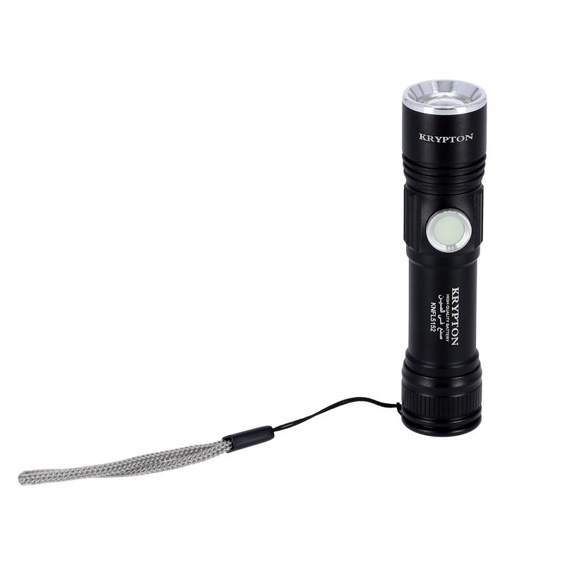 Krypton KNFL5152 Rechargeable LED Flashlight - Whether you're camping or taking a late-night walk with the dog, the reliable Krypton Rechargeable Flashlight is a good companion. Durable and easy to handle, it is an ideal handheld flashlight for use around the house or in an emergency. It can be used for both indoor and outdoor activities. It is small but powerful that can be easily carried. Utilizes a genuine high performance, high-efficiency LED for high brightness. It produces a strong bright light, comes with a bright LED Light for illumination for use in the night or when you are camping in the summer or for any emergencies & gives a bright light. Portable handy design, rechargeable flashlight with a strong bright light that is perfect for outdoor and indoor activity Suit for student, outdoor travel, home, study, and traveling.The high-performance battery gives you the highest possible capacity, efficiency, reliability, and safety. A perfect option for cycling, camping, hunting and fishing! The tactical flashlight can be used as camping lantern, background light, night safety light, emergency light etc. Take the flashlight when you go camping or picnics on your next adventure. High Power Flashlight, With Unbreakable Lens and High Capacity Rechargeable Battery. Hyper Bright LED comes with High Polished Reflector which withstands extreme temperatures and delivers superior optical performance.