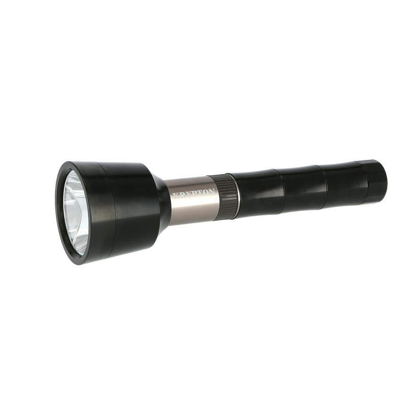 Whether you're camping or taking a late-night walk with the dog, the reliable Krypton Rechargeable Flashlight is a good companion. Durable and easy to handle, it is an ideal handheld flashlight for use around the house or in an emergency. It can be used for both indoor and outdoor activities. It is small but powerful that can be easily carried. Utilizes a genuine high performance, high-efficiency CREE LED for high brightness. Compact but also comfortable to hold, the torch fits very well in your hand or bag. Made of high-quality aluminum alloy which is sturdy and durable and the skid-proof design can prevent slip out easily. The high-performance 1500mAh battery gives you the highest possible capacity, efficiency, reliability, and safety. The tactical flashlight can be used as camping lantern, background light, night safety light, emergency light etc. Take the flashlight when you go camping or picnics on your next adventure. HighlightsPortable design makes it easy to hold and compact size ensures easy storageHigh Capacity Rechargeable 1500Mah BatteryHyper Bright Cree Led