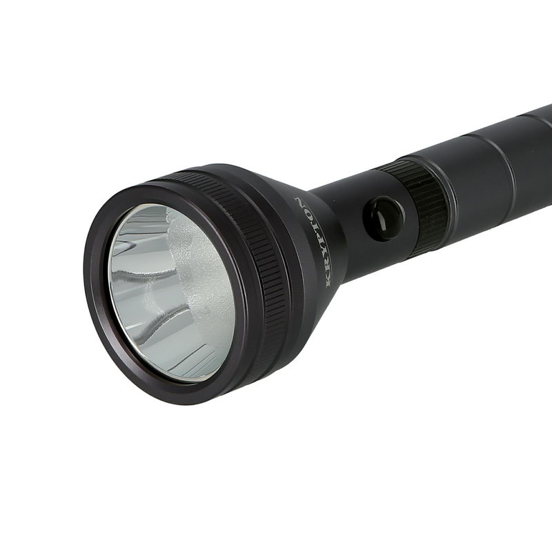 Krypton KNFL5148 Rechargeable LED Flashlight - Whether you're camping or taking a late-night walk with the dog, the reliable Krypton Rechargeable Flashlight is a good companion. Durable and easy to handle, it is an ideal handheld flashlight for use around the house or in an emergency. It can be used for both indoor and outdoor activities. It is small but powerful that can be easily carried. Utilizes a genuine high performance, high-efficiency CREE LED for high brightness. It produces a strong bright light, comes with a bright CREE LED Light for illumination for use in the night or when you are camping in the summer or for any emergencies & gives a bright light. Portable handy design, rechargeable flashlight with a strong bright light that is perfect for outdoor and indoor activity Suit for student, outdoor travel, home, study, and traveling.The high-performance 4000mAh battery gives you the highest possible capacity, efficiency, reliability, and safety. A perfect option for cycling, camping, hunting and fishing! The tactical flashlight can be used as camping lantern, background light, night safety light, emergency light etc. Take the flashlight when you go camping or picnics on your next adventure. High Power Flashlight, With Unbreakable Lens and High Capacity Rechargeable 4000Mah Battery. Hyper Bright Cree LED comes with High Polished Reflector which withstands extreme temperatures and delivers superior optical performance.